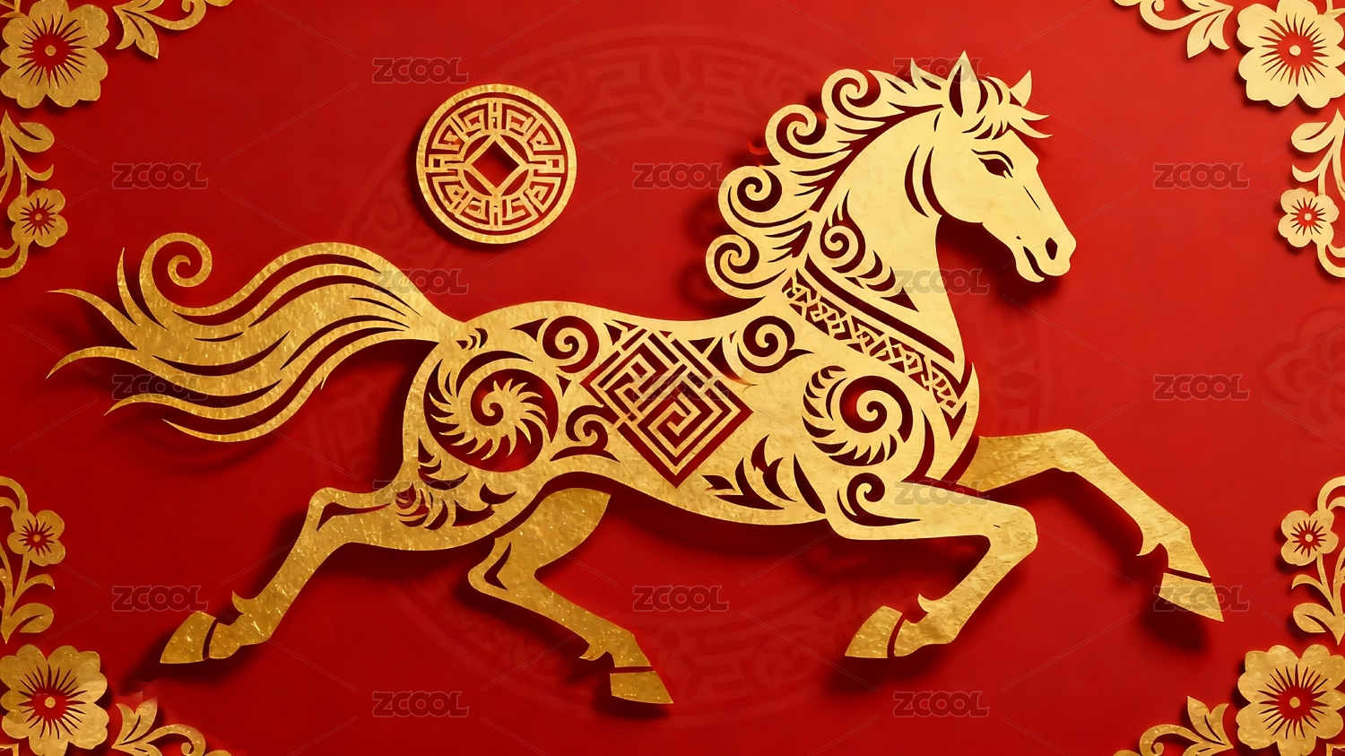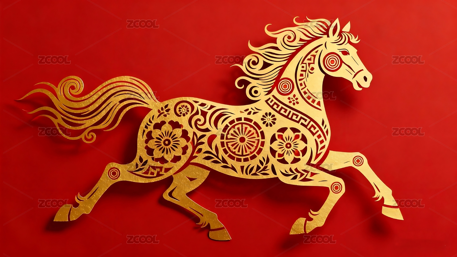 2026,骏马,新春,春节,喜庆,新年,马年,生肖马,金色,奔腾