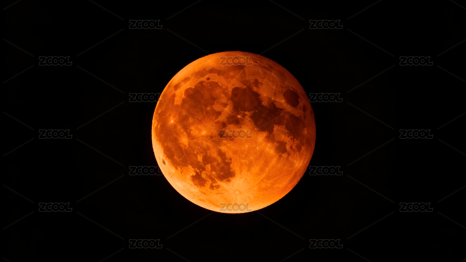 橙红色满月悬于漆黑夜空中央