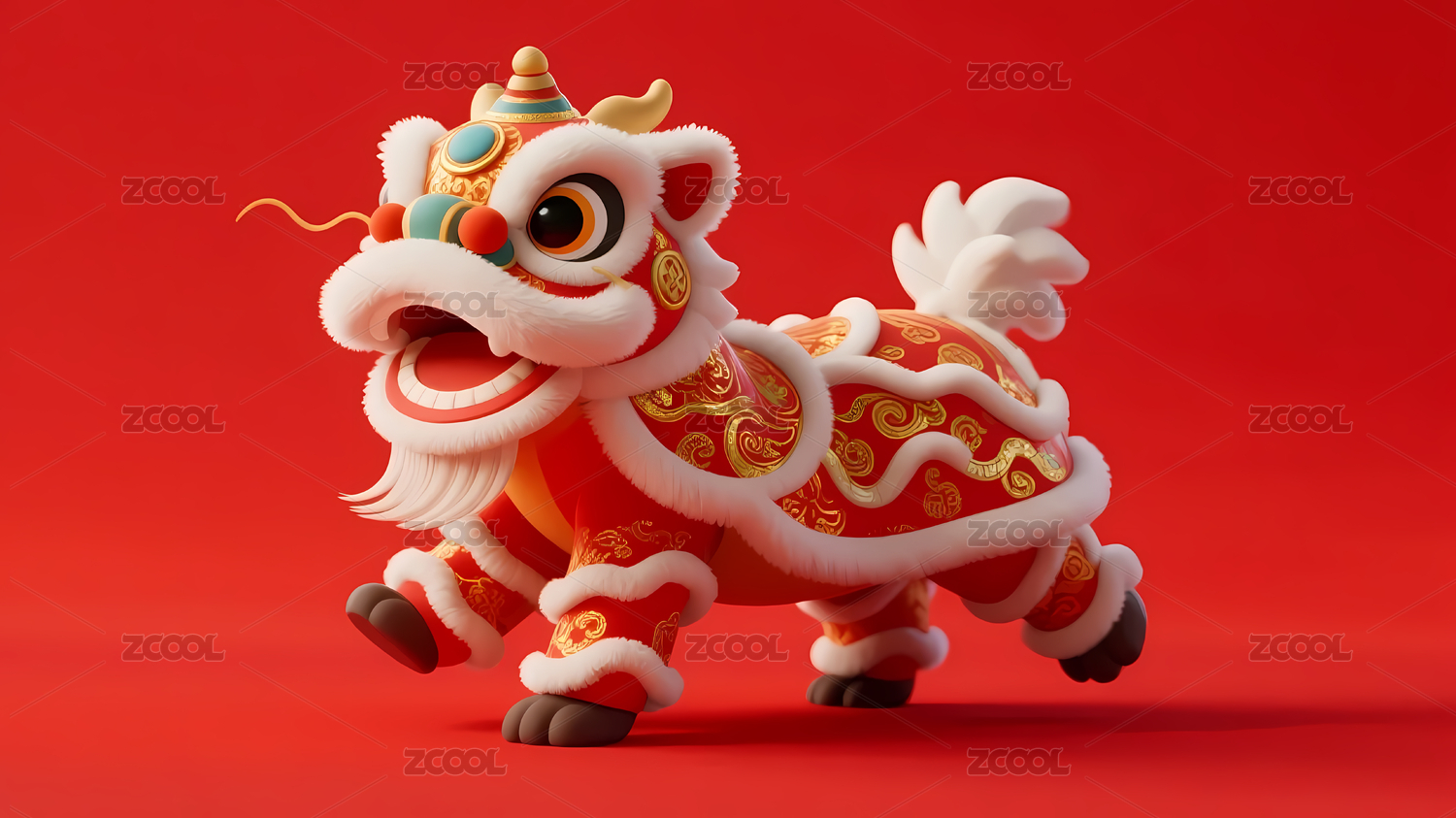 红色背景上的舞狮马玩偶