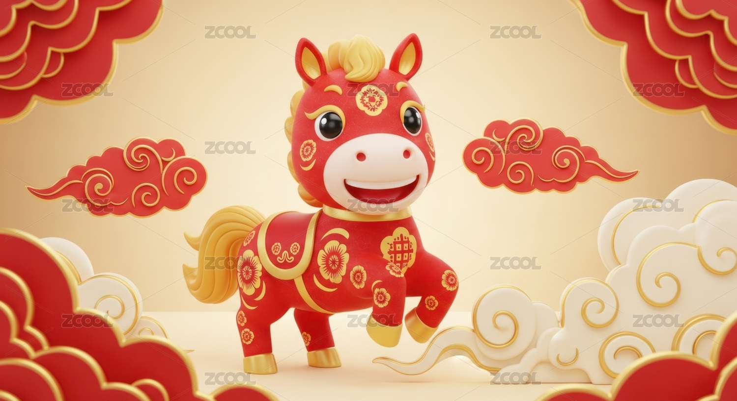 红色小马站在金色祥云上