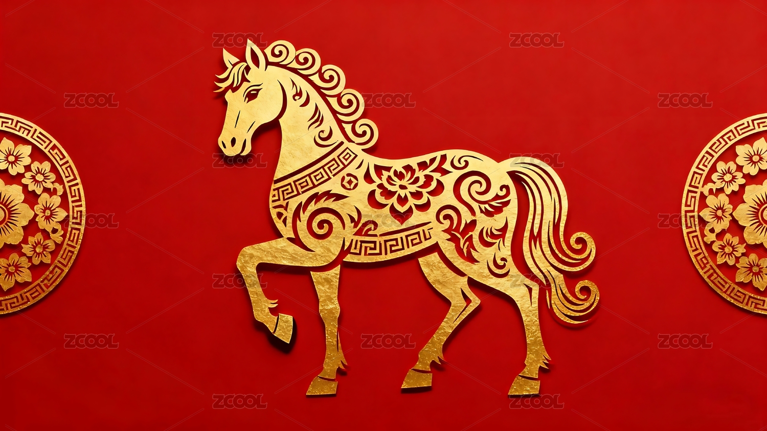 2026,骏马,新春,春节,喜庆,新年,生肖,吉祥,祥云,装饰