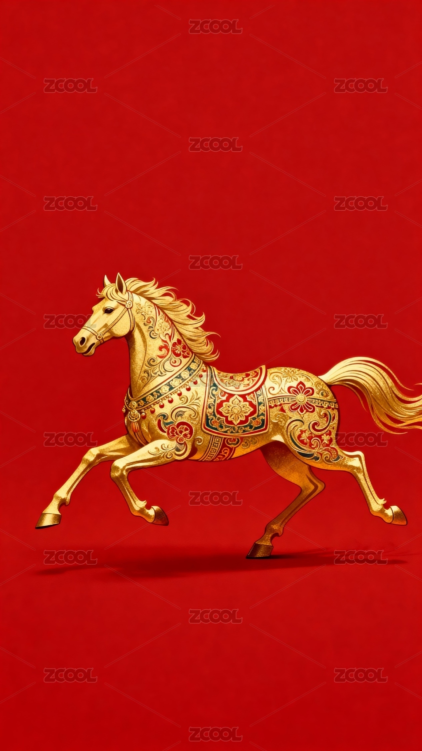 红色背景金色骏马