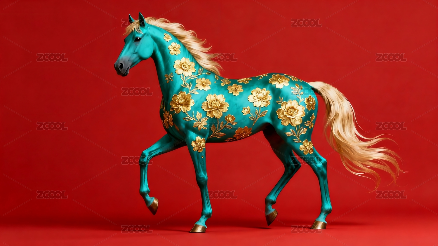 金色,马,红色,背景,雕塑,马到成功,中国风,生肖,金色马,生肖马