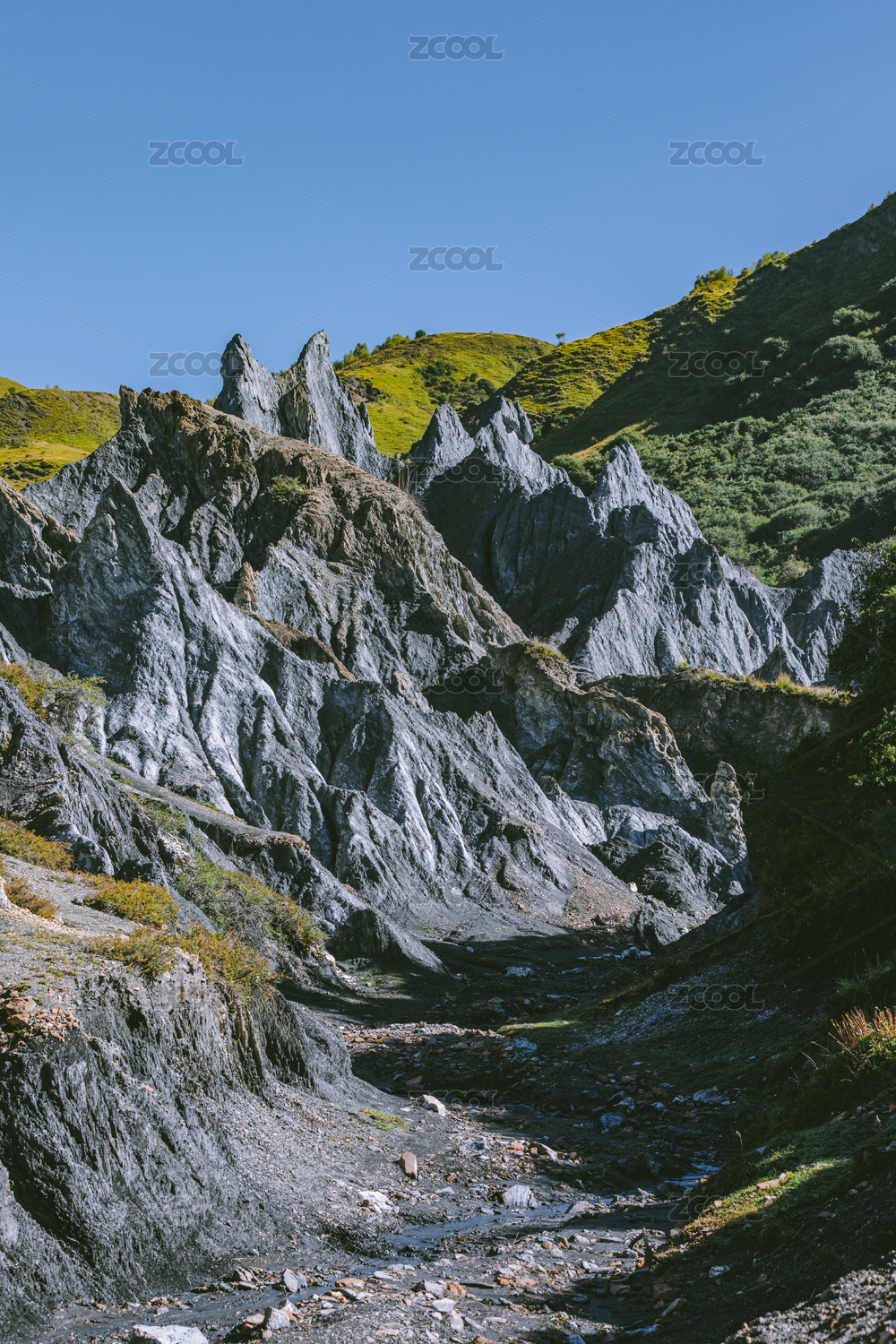 四川甘孜道孚县八美墨石公园糜棱岩山体特写