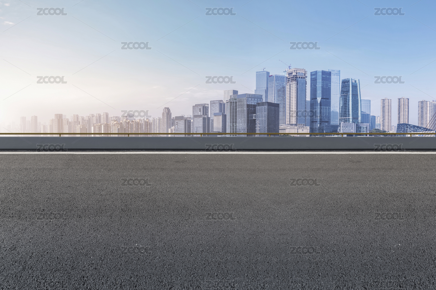 城市天际线与空阔道路