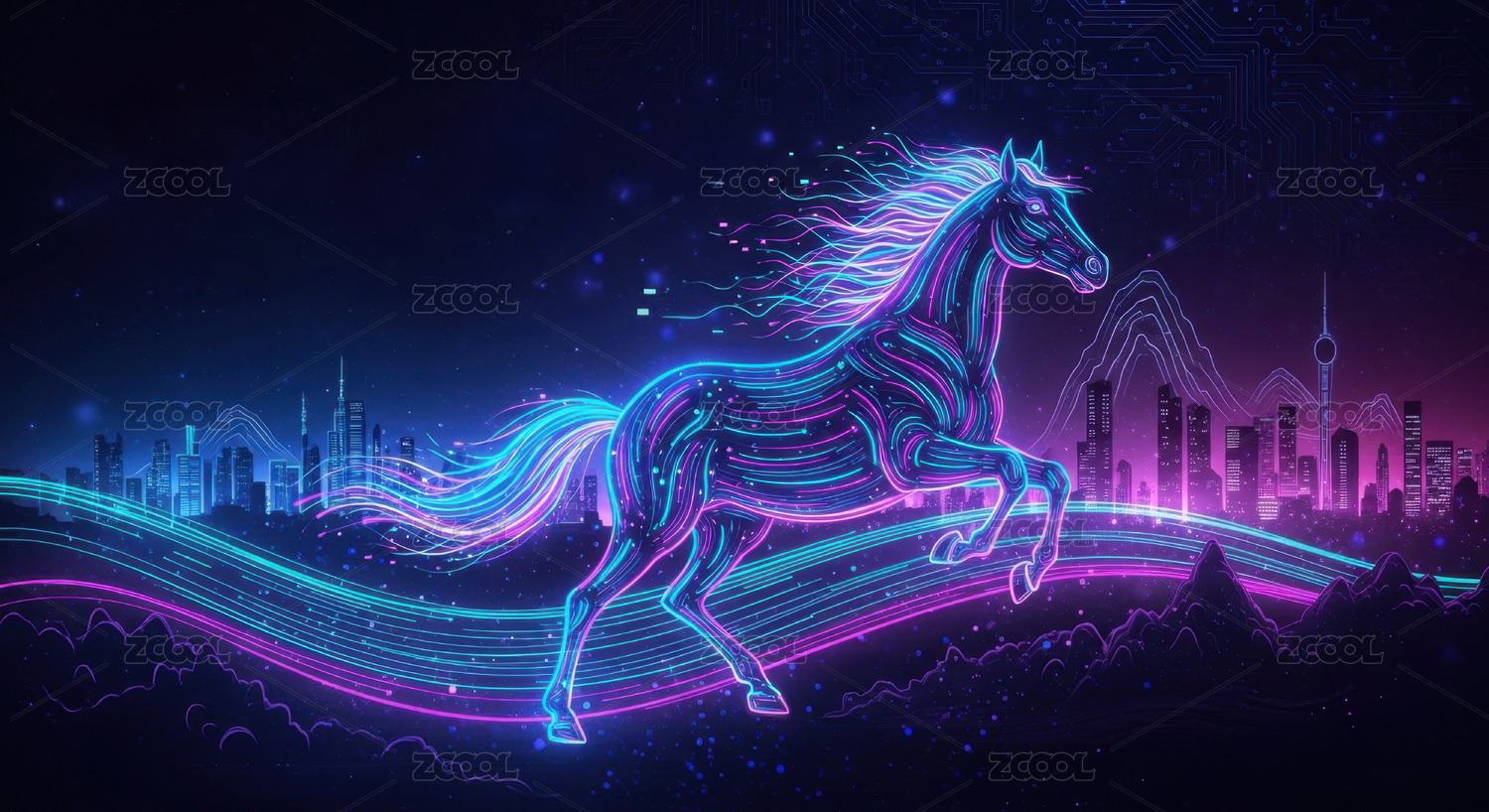 霓虹骏马赛博朋克