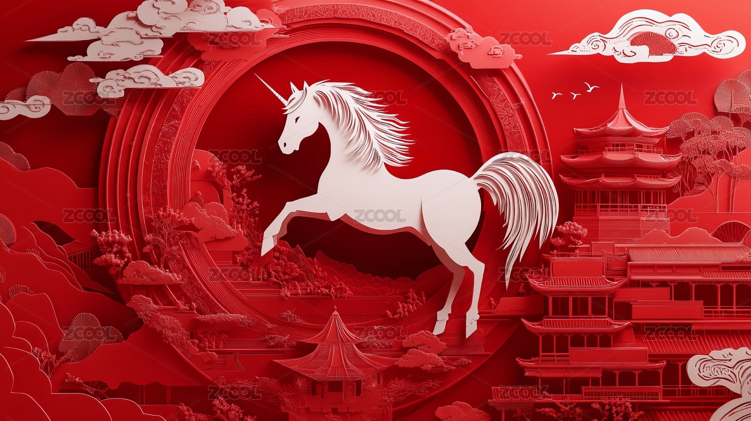 骏马祥云中国风古建筑