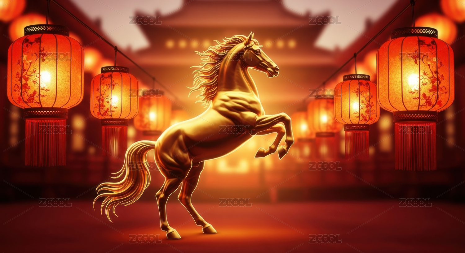 2026金色骏马跃起中国风灯笼过道