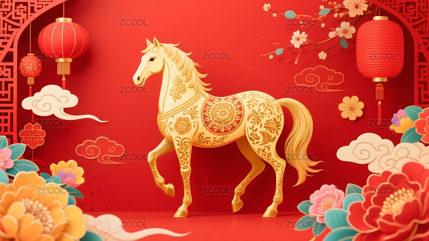 金色飞马红色喜庆氛围