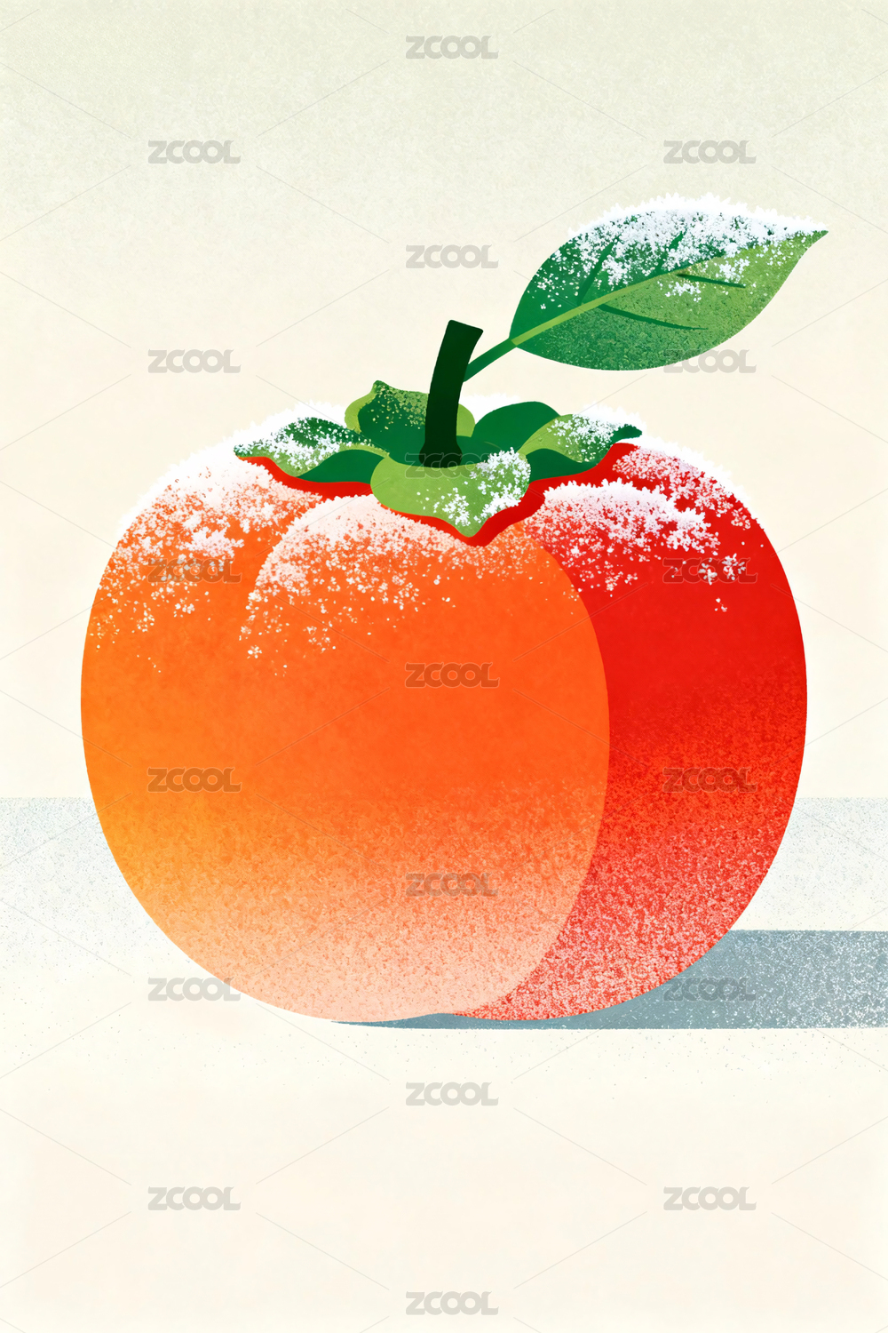 柿子,雪,插画,冬日,果实,霜降,吉祥,手绘,橙色,叶子