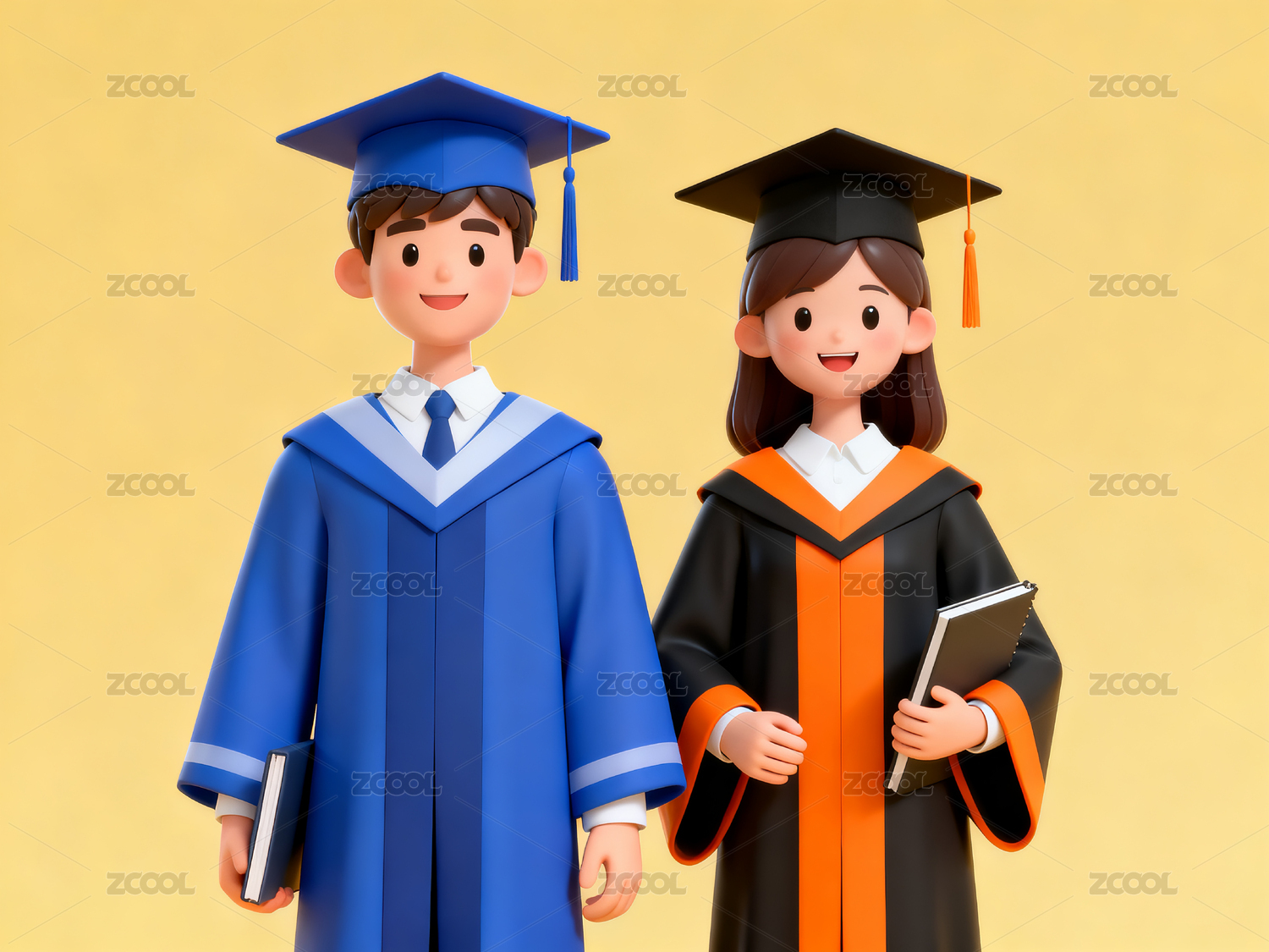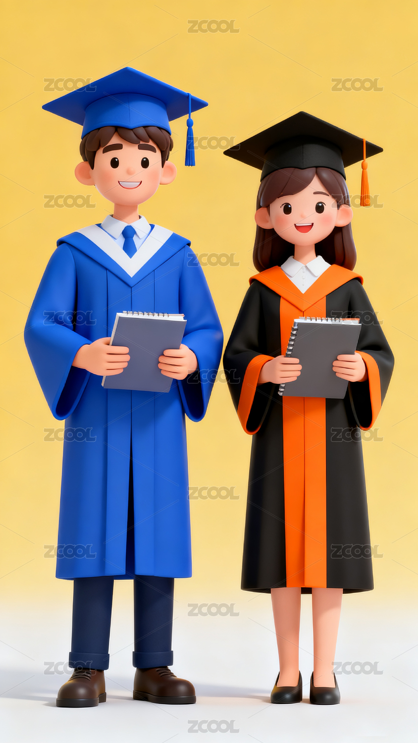 穿着学士服的3D卡通毕业生