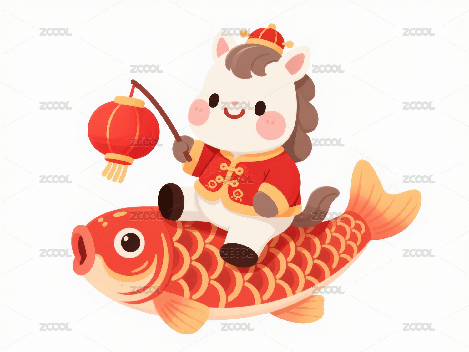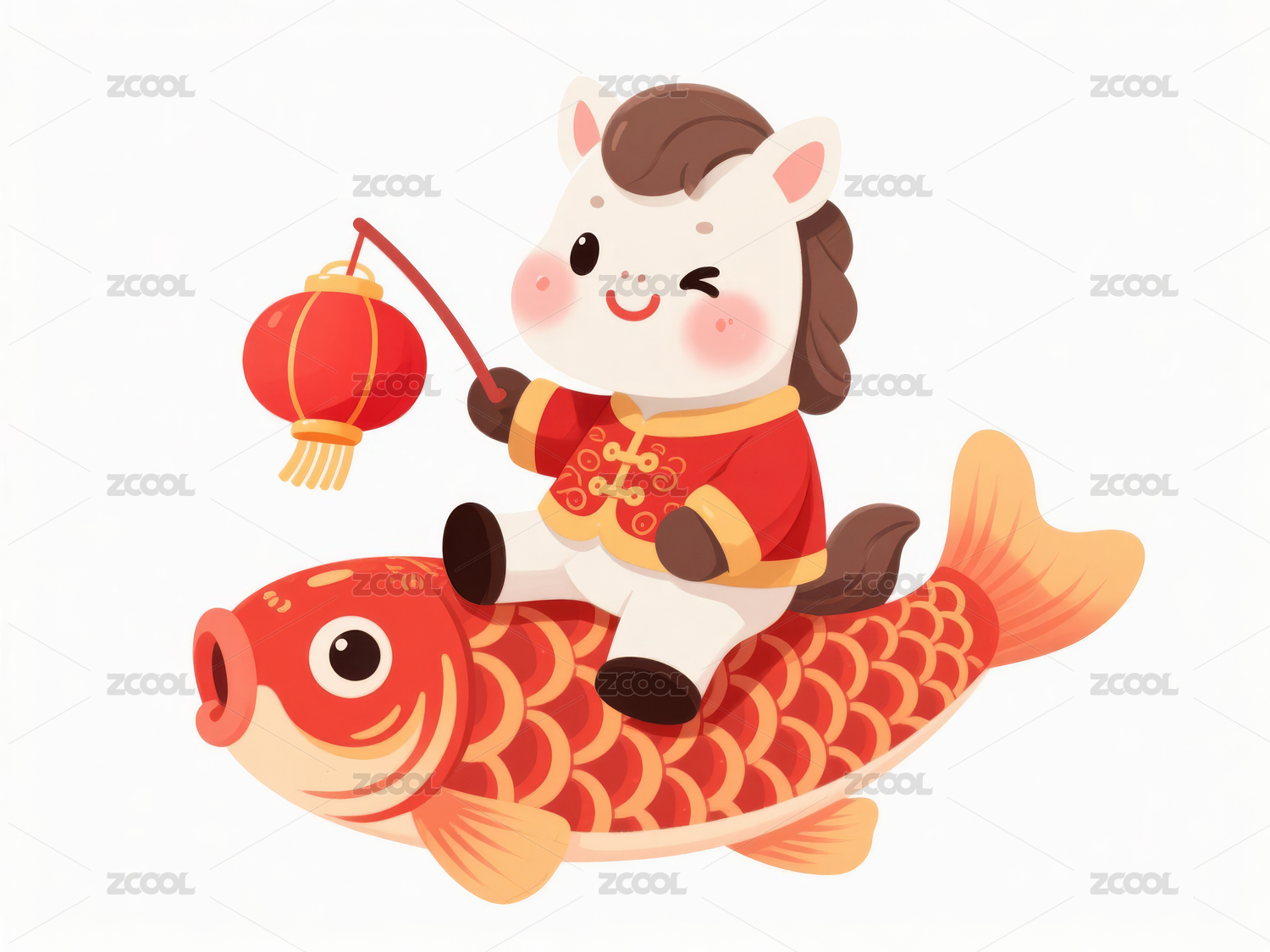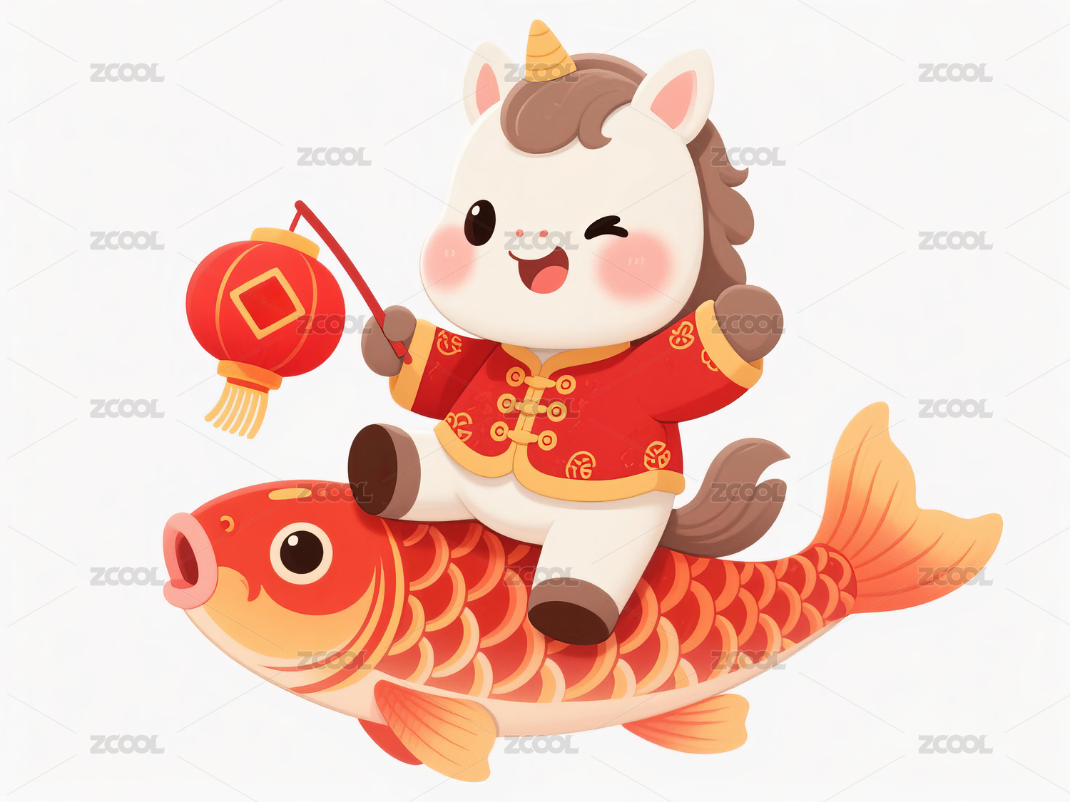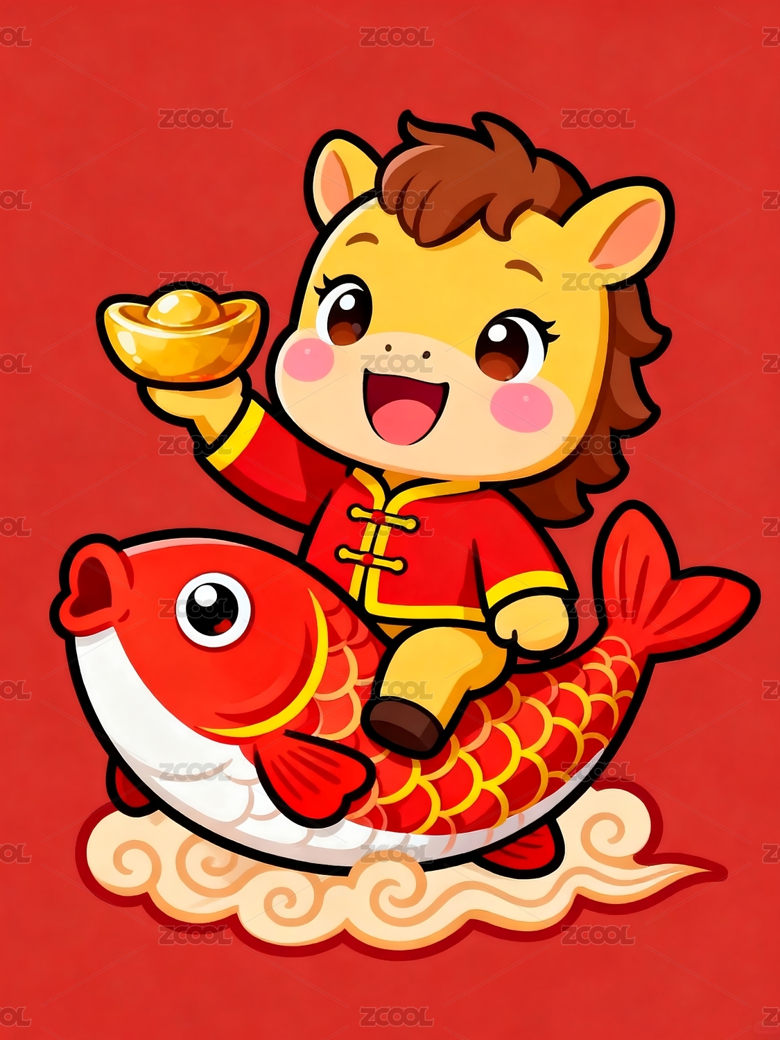 卡通,小马,锦鲤,红包,生肖,马,喜庆,拜年,插画,中国风