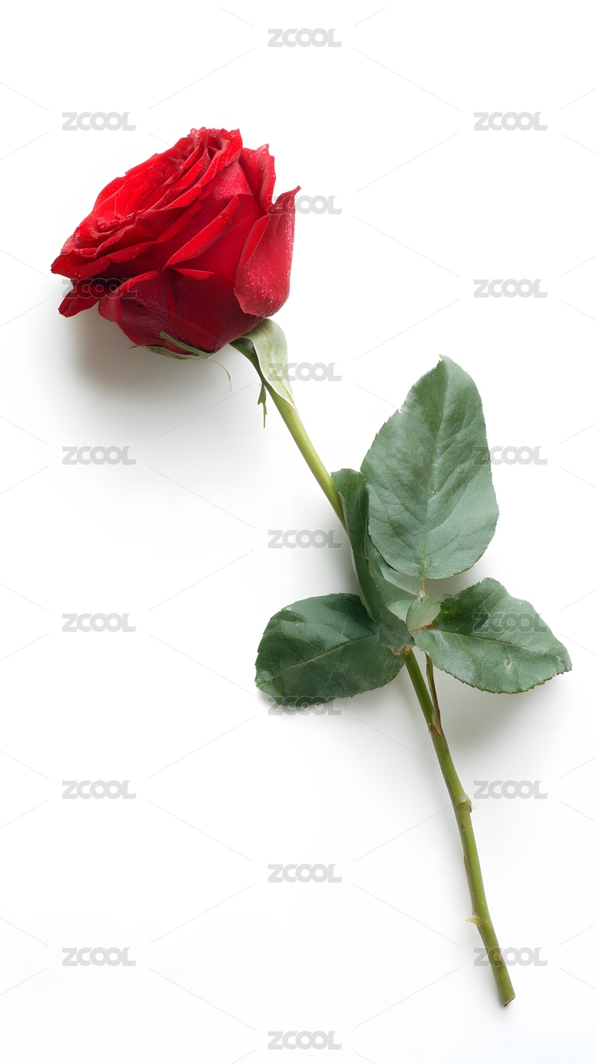 一朵七夕节情人节鲜花红色玫瑰花特写白底图