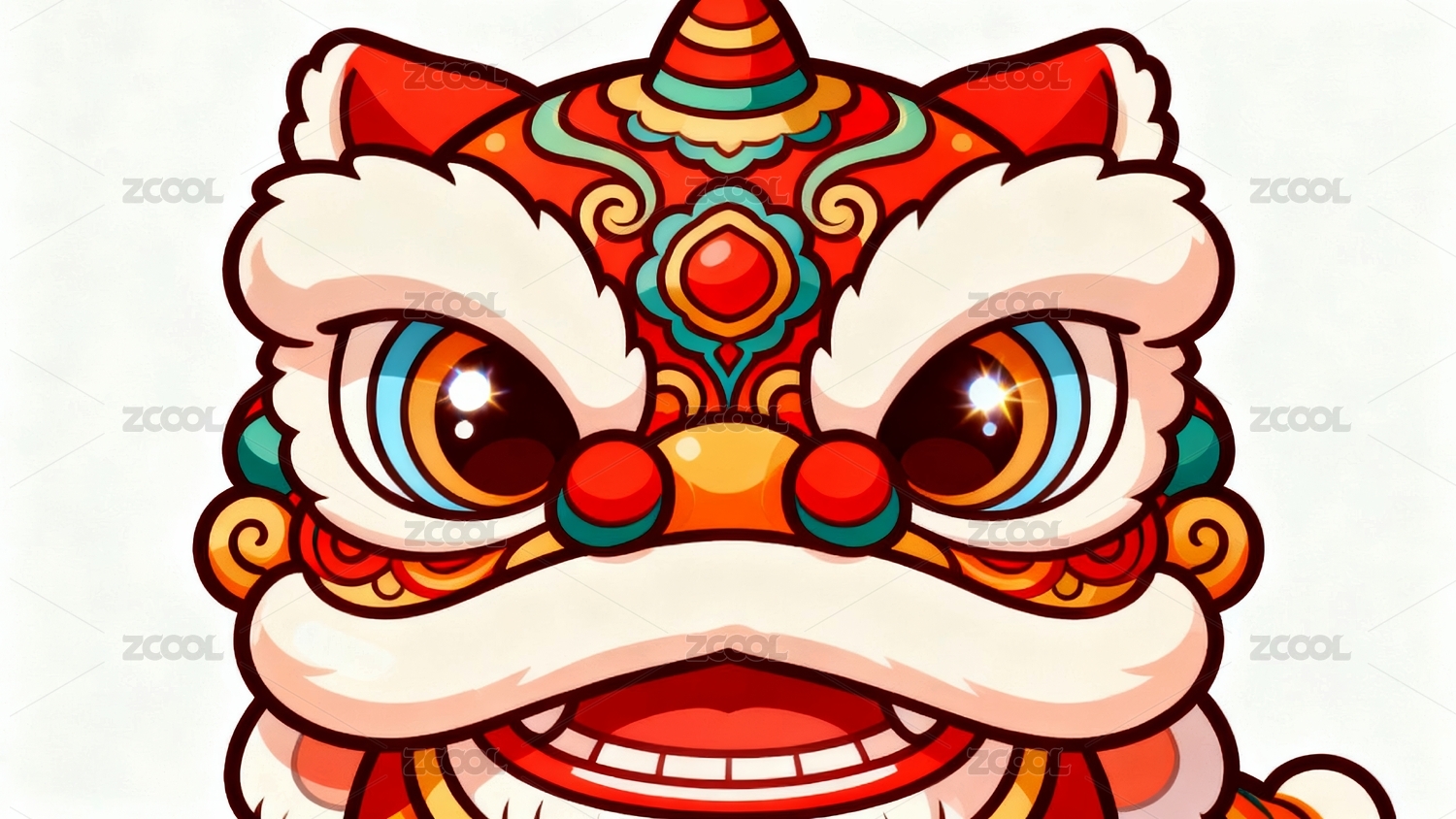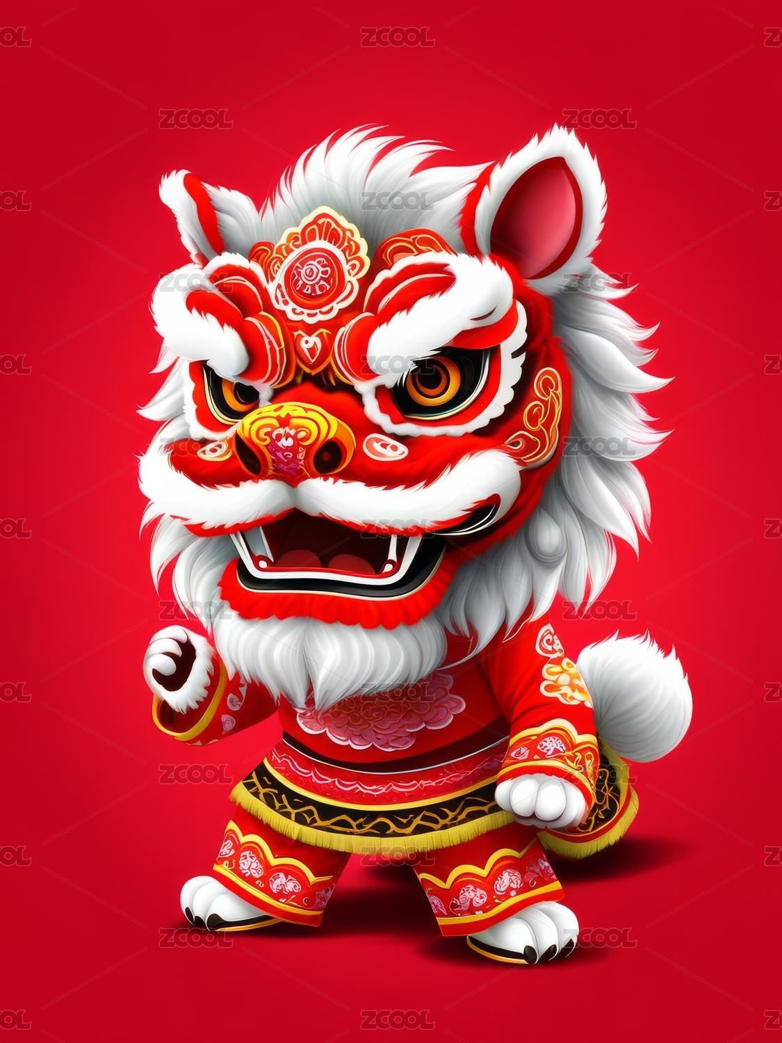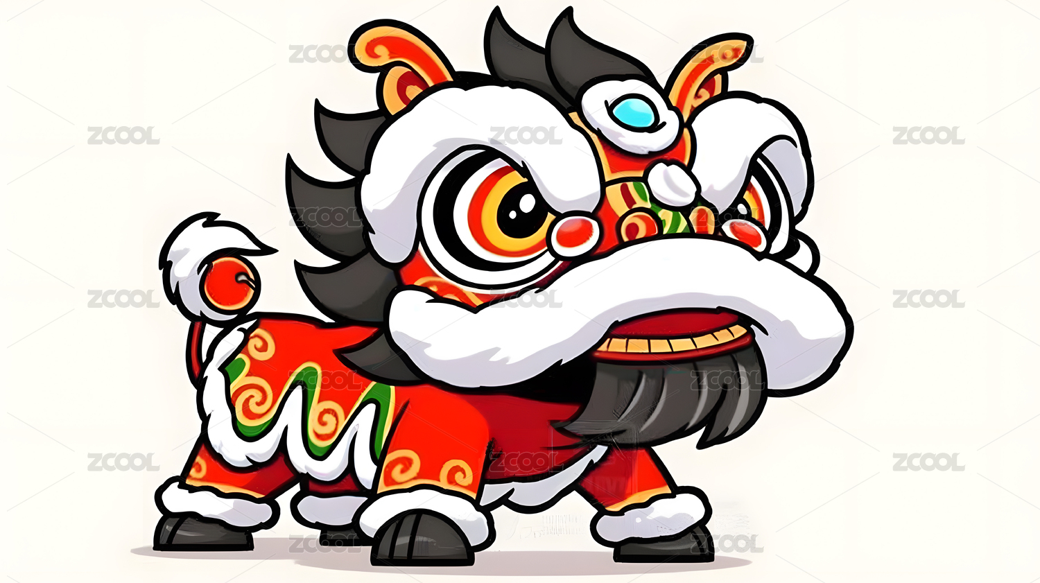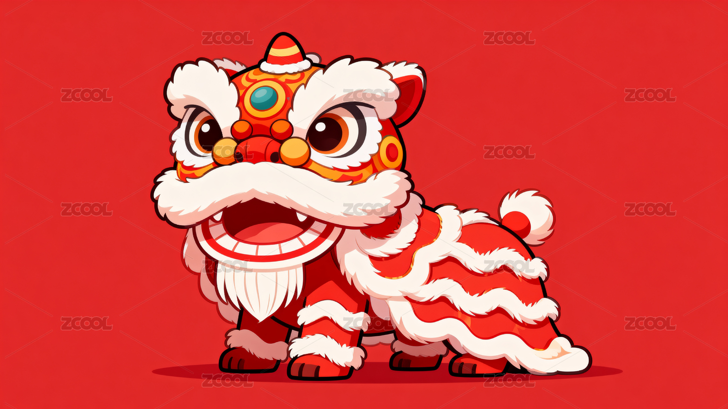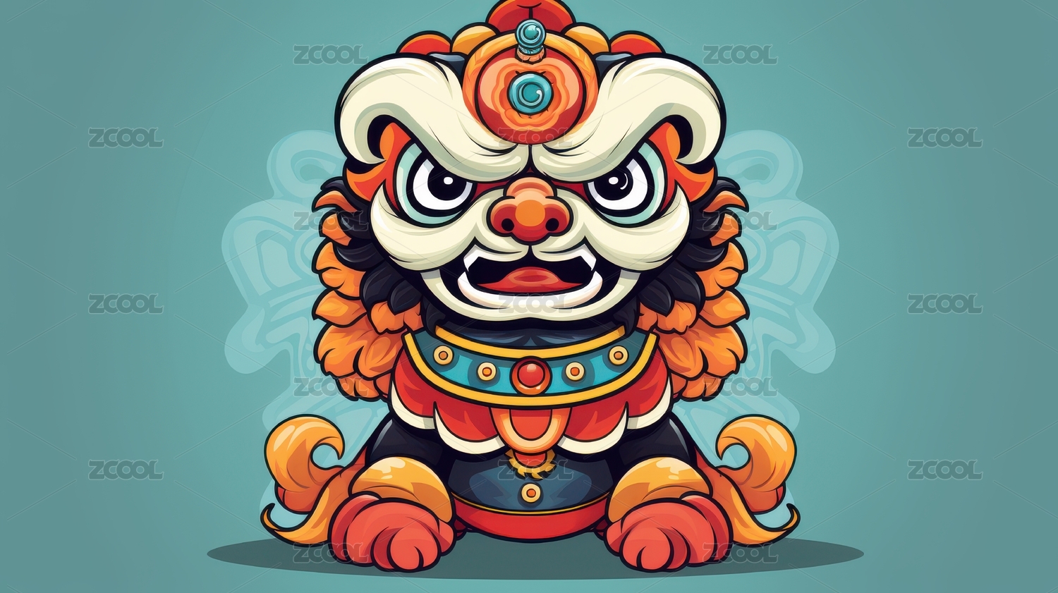 醒狮,卡通,国潮,舞狮,中国风,狮子,传统,喜庆,插画,Q版