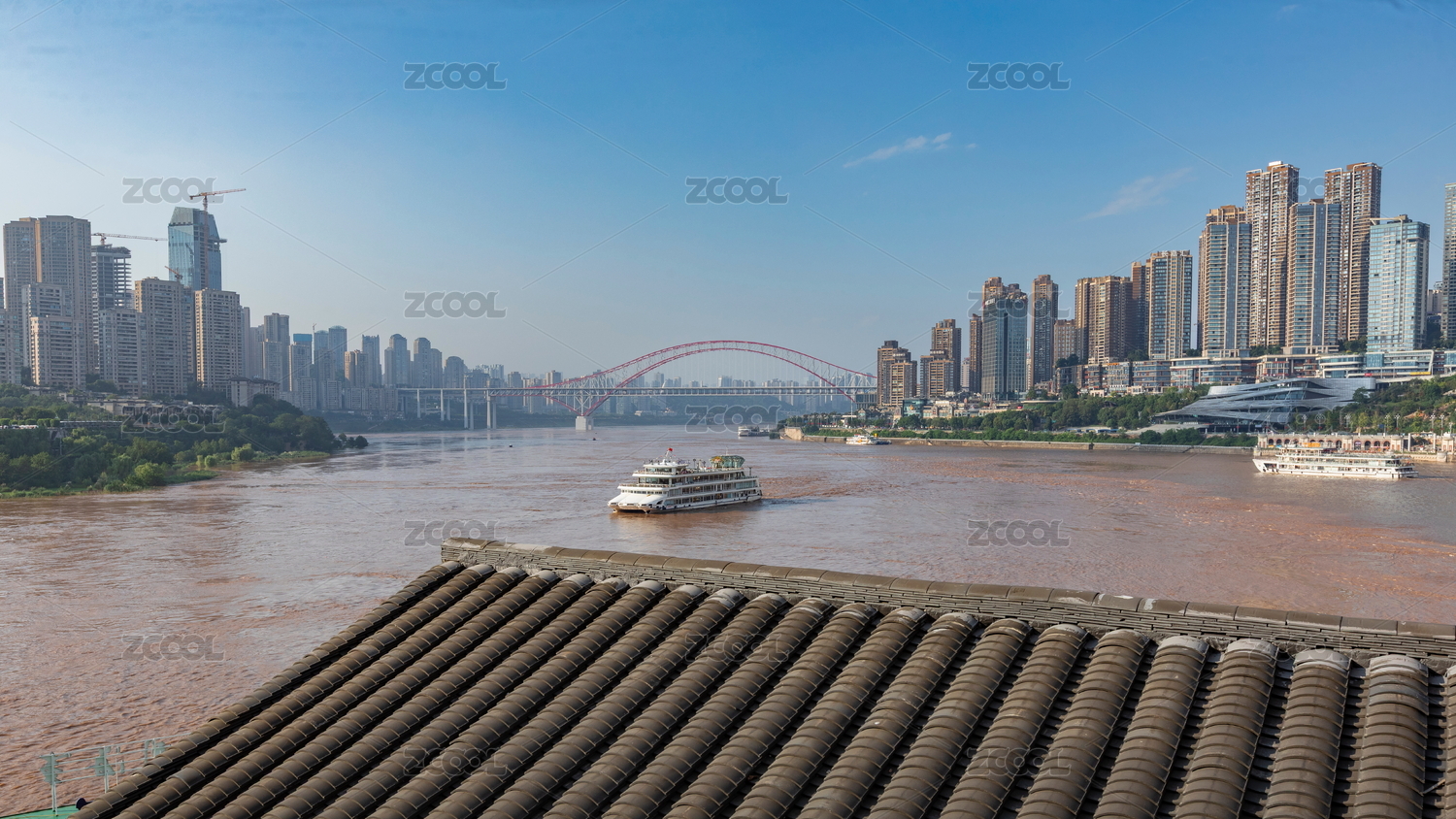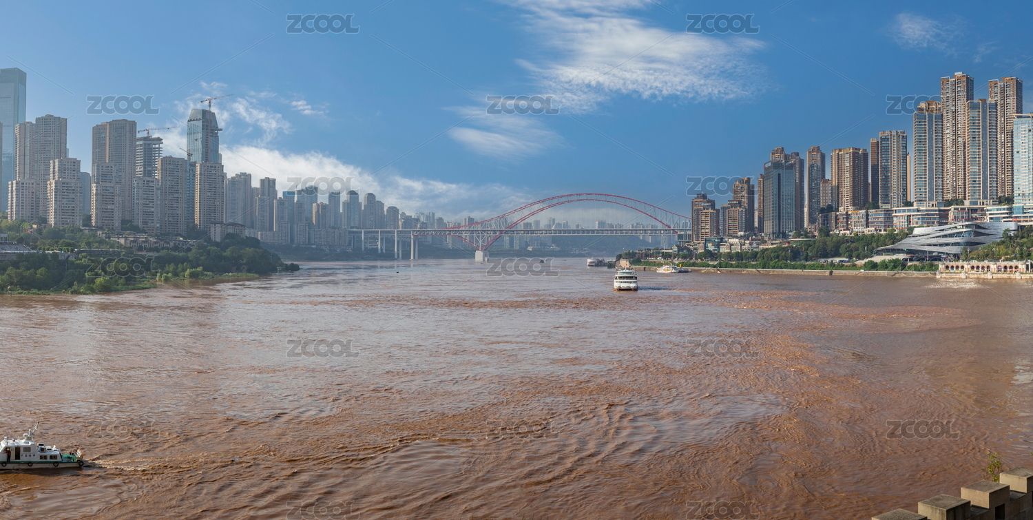 中国重庆朝天门长江大桥边长江两岸