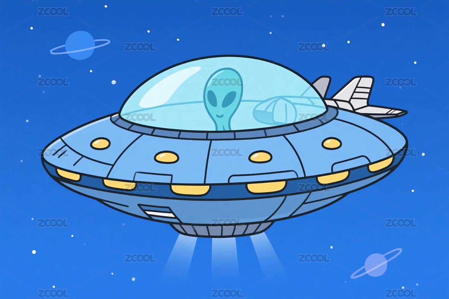 外星人坐在异星地貌上背景是星空和宇宙飞船