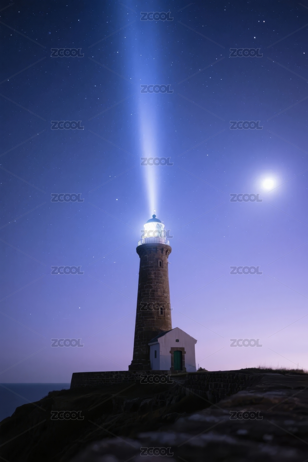 海洋灯塔灯光星河星空银河夜晚梦幻唯美创意