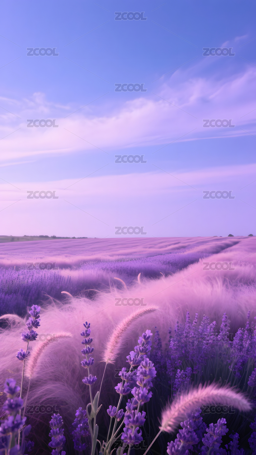 紫色滤镜下的湿地景观水面倒映着粉色植被