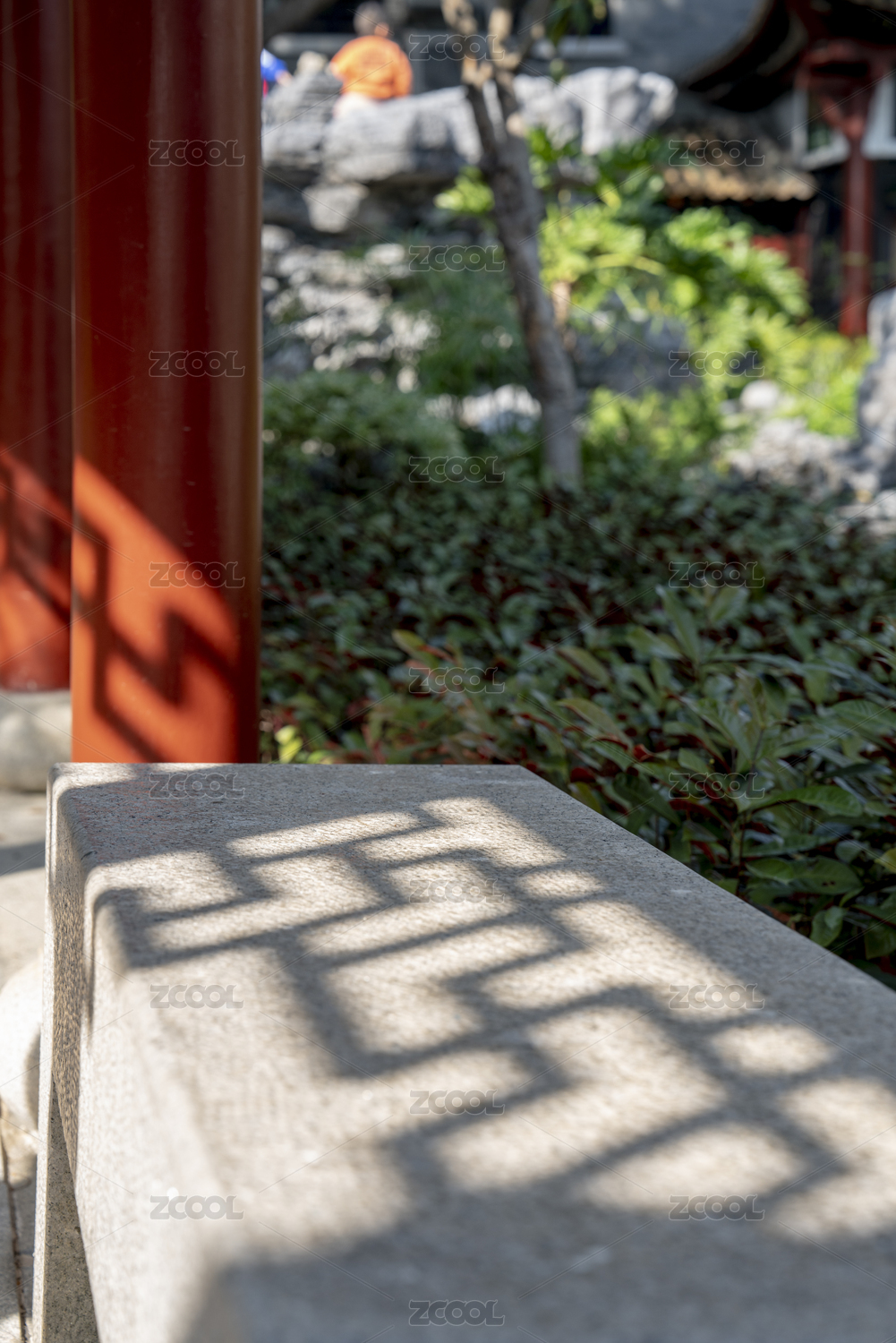 长廊,石凳,中式建筑,古建筑,桂花,落花
