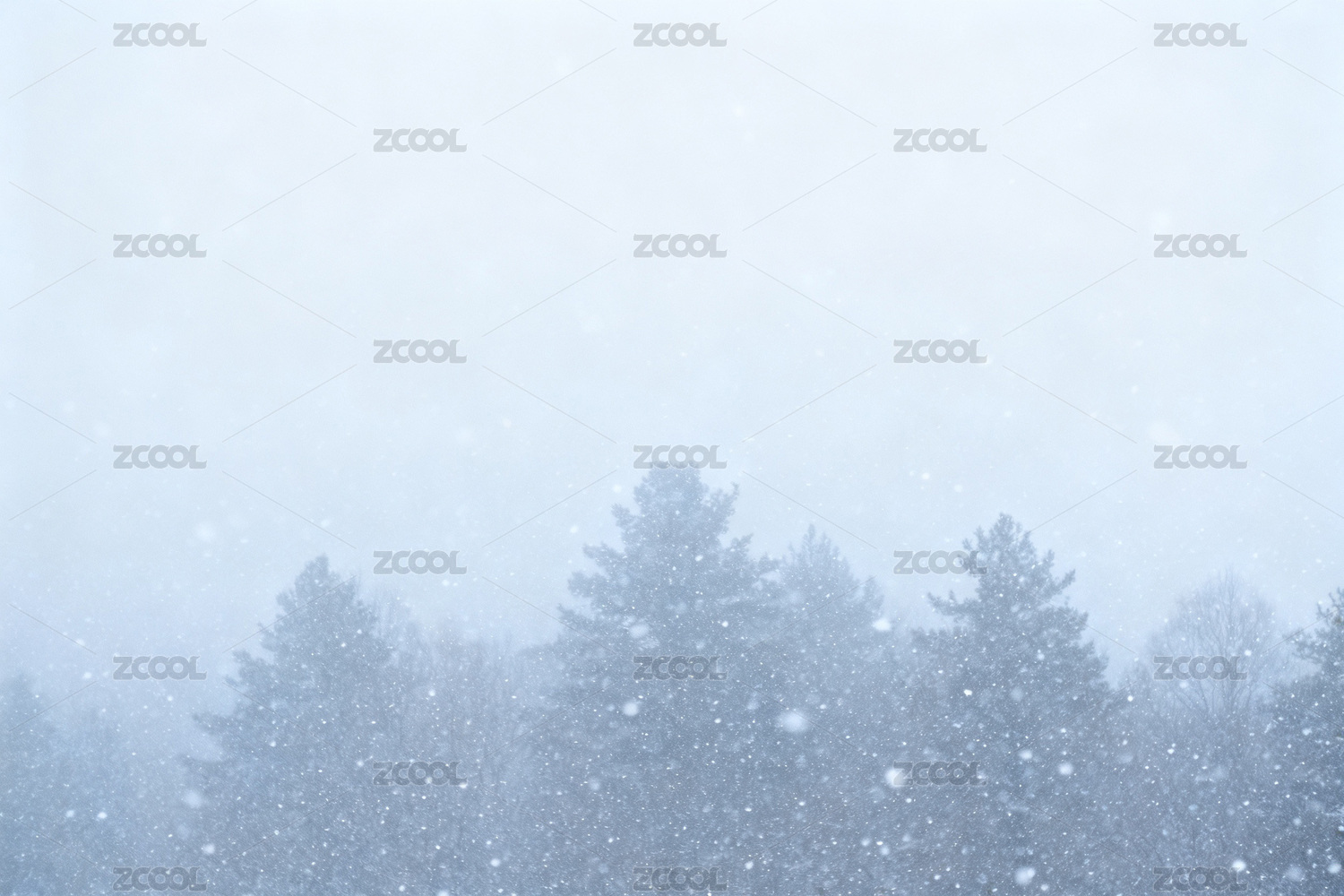 蓝色,雪花,飘落,雾气,弥漫,树木,光秃,枝条,天空,寒冷