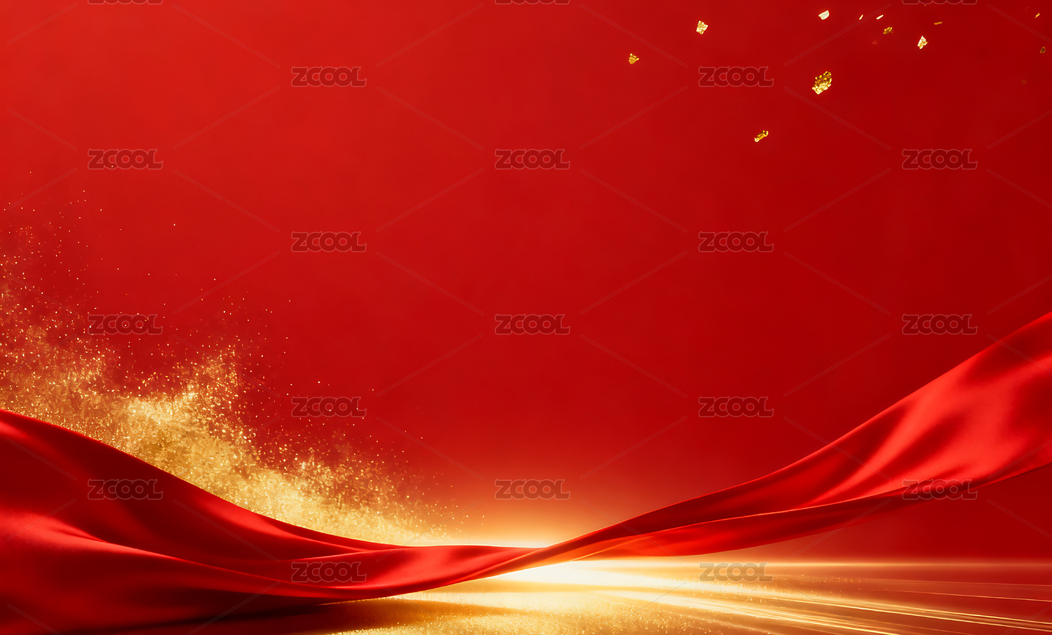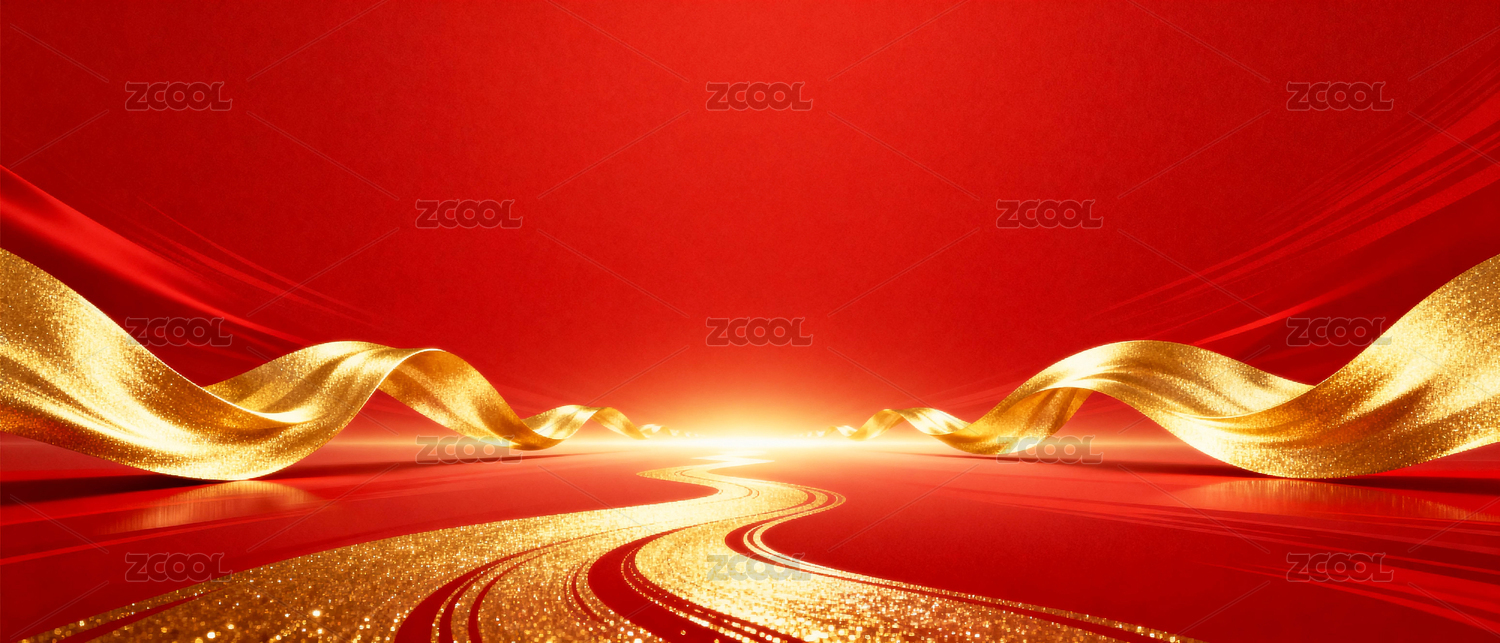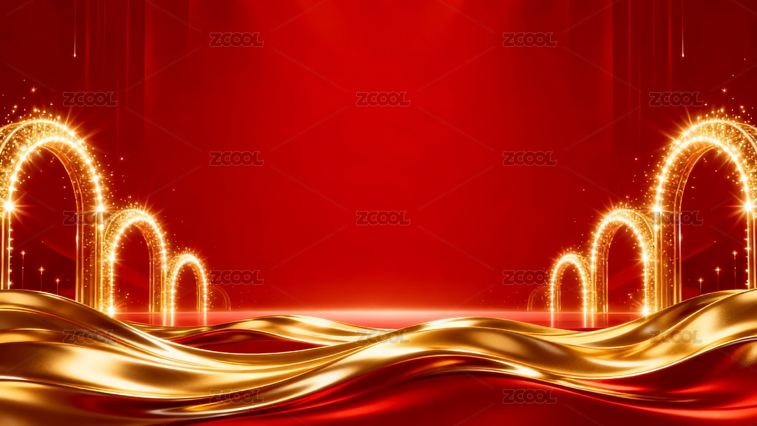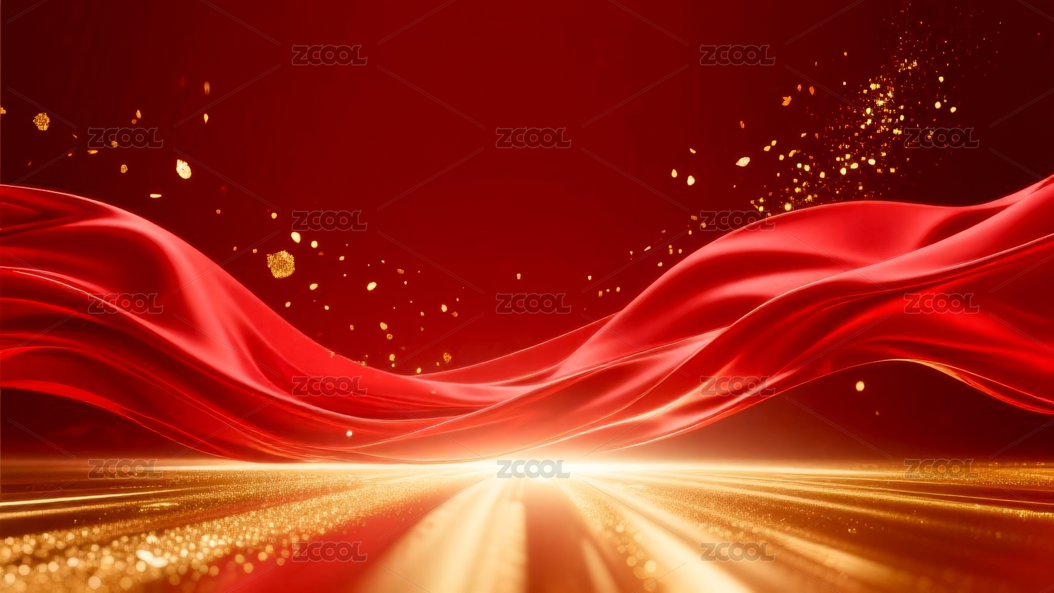 商务庆典红色丝绸绸缎金色光效主视觉背景