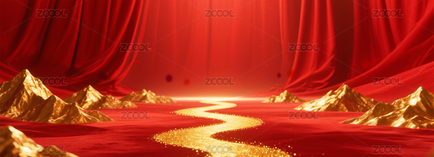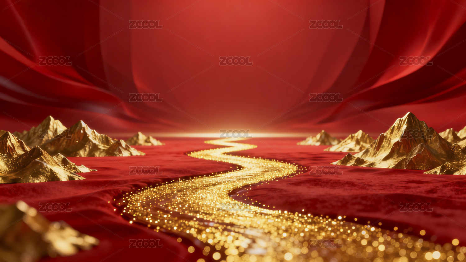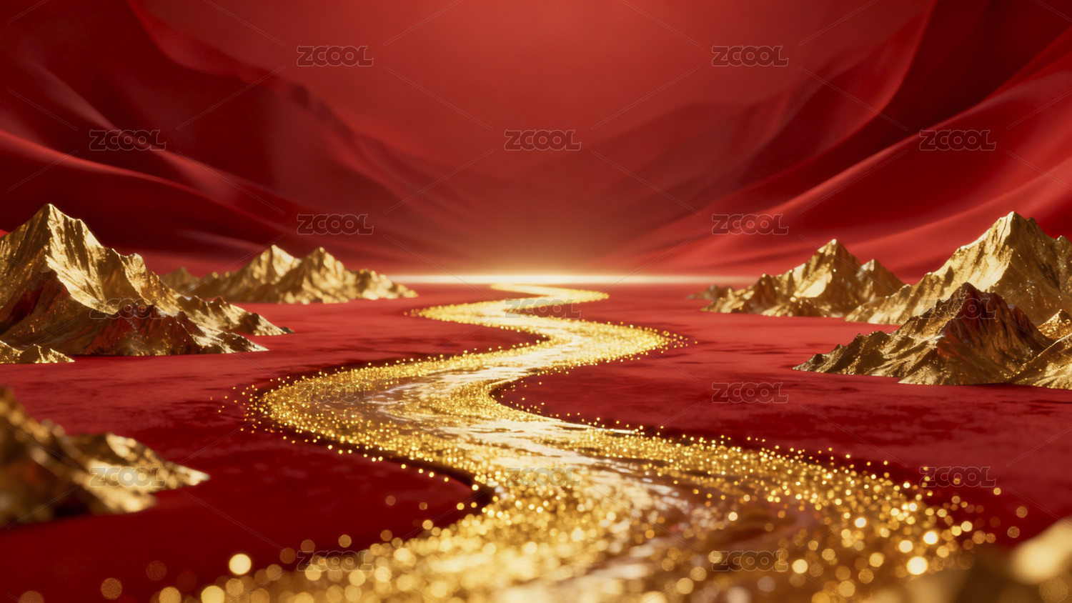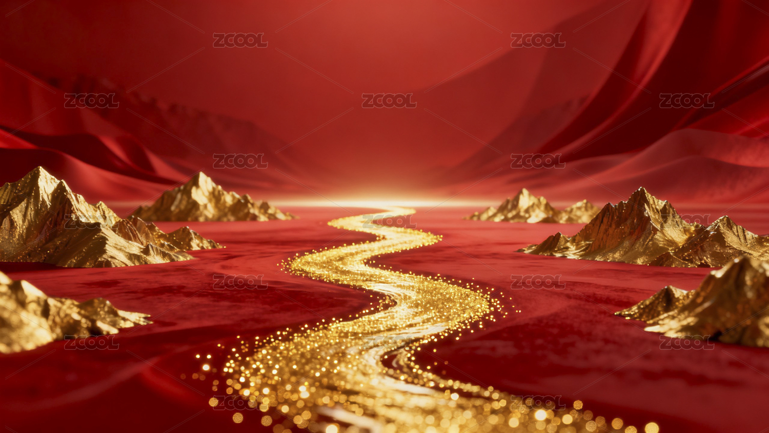 商务庆典红色丝绸绸缎金色光效主视觉背景