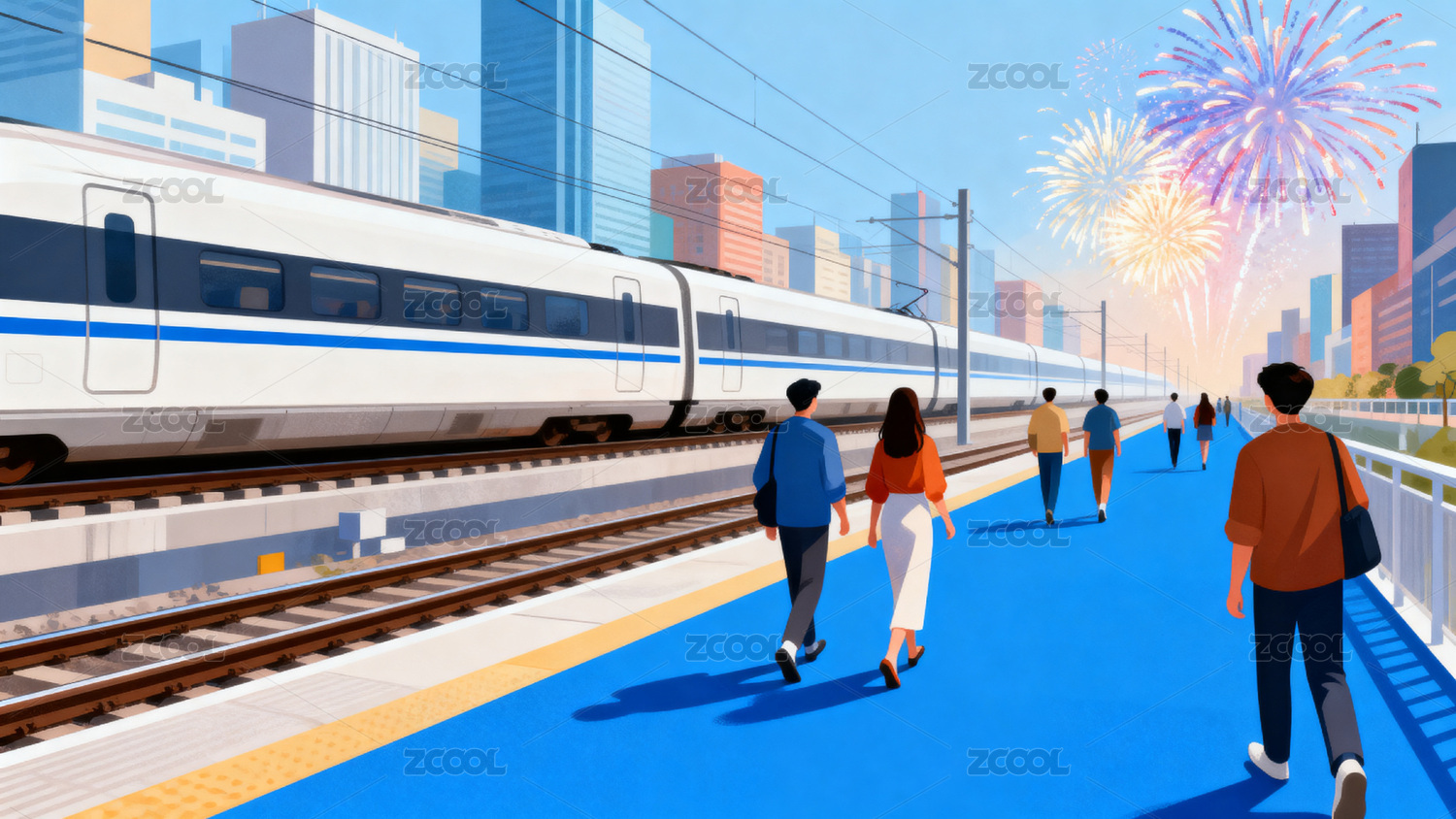 高楼,玻璃,天空,城市,现代,繁华,高铁,火车,烟花,乘客