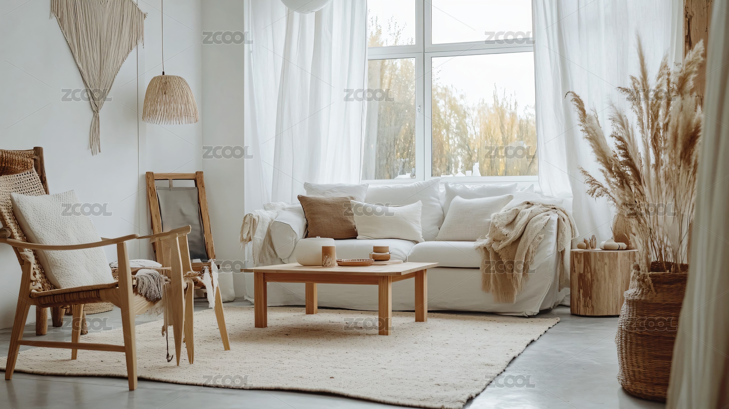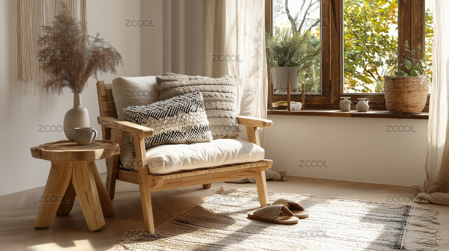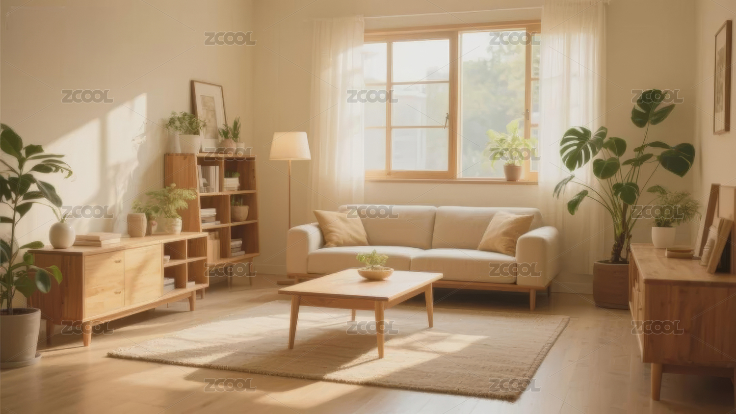 装饰,木质,客厅,家具,舒适,自然,窗帘,沙发,茶几,绿植