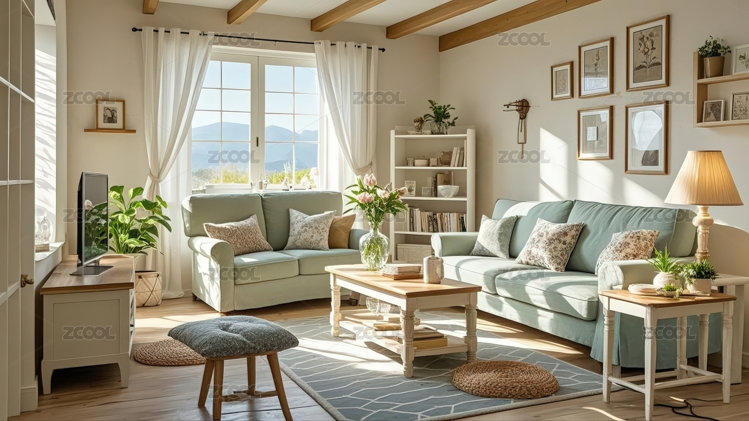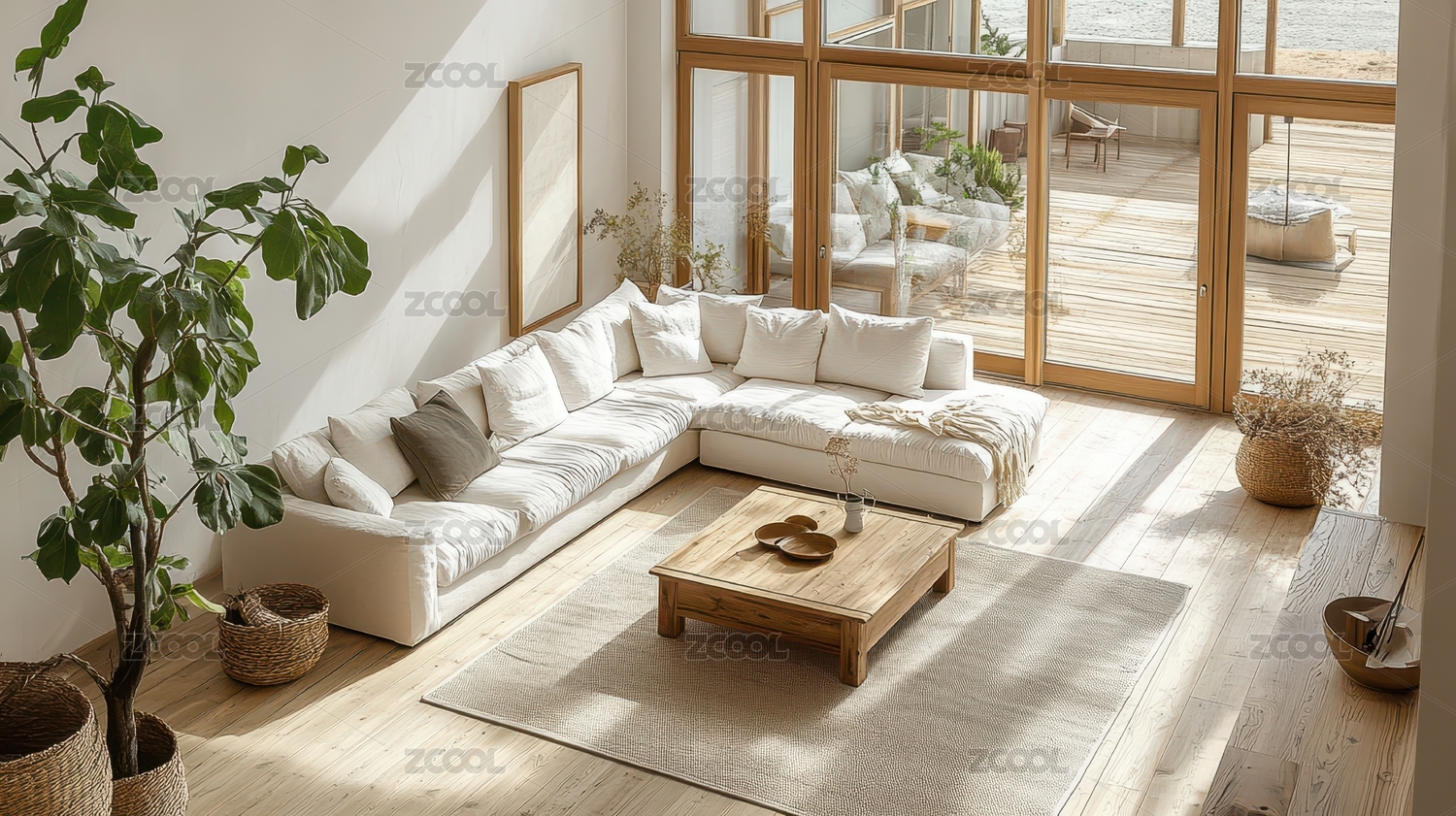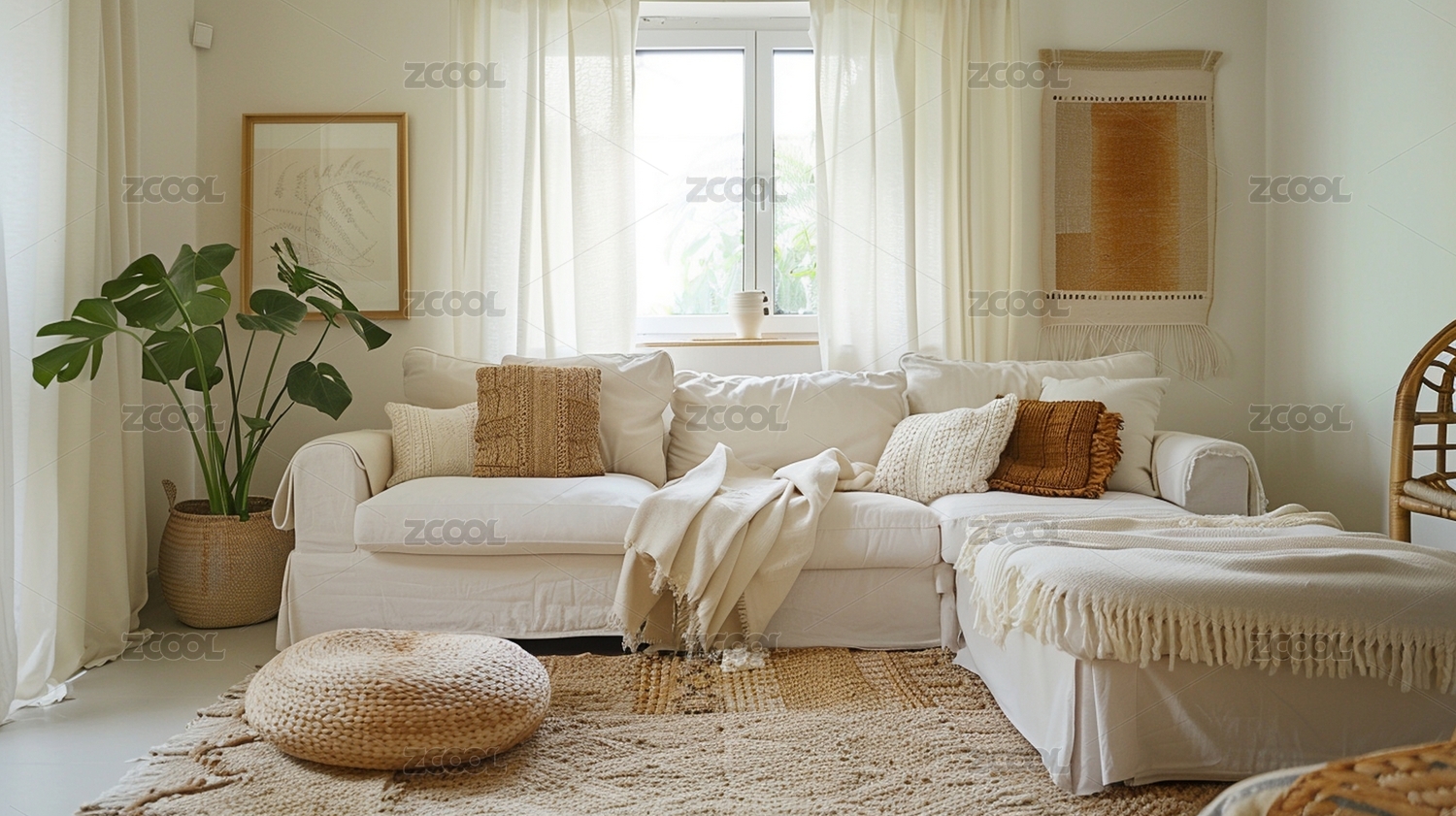 装饰,木质,客厅,家具,舒适,自然,窗帘,沙发,茶几,绿植