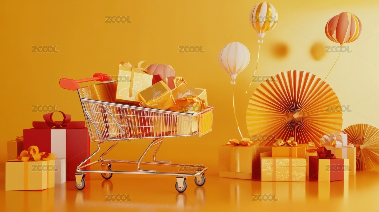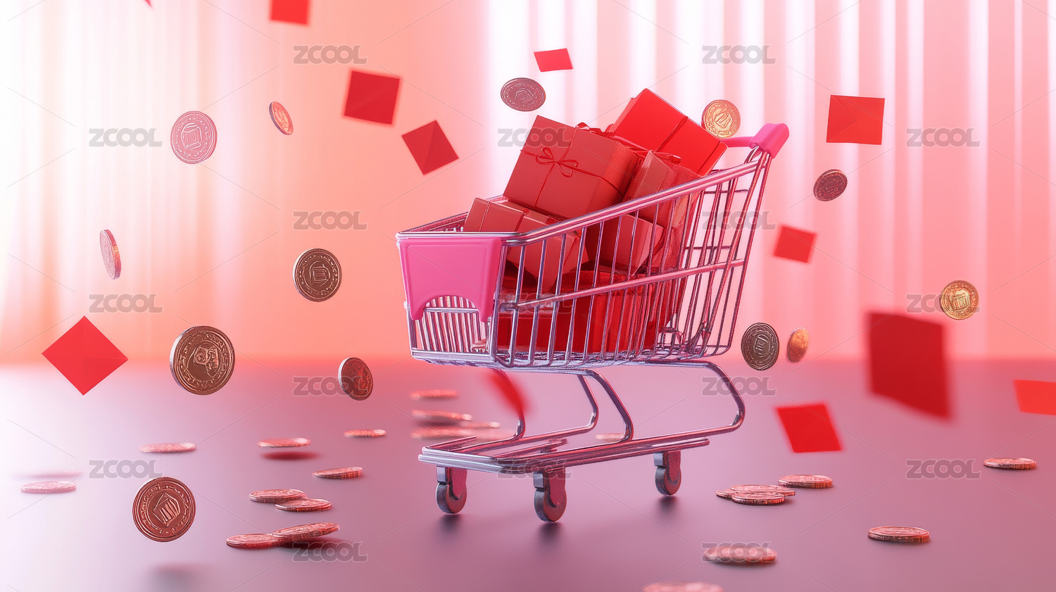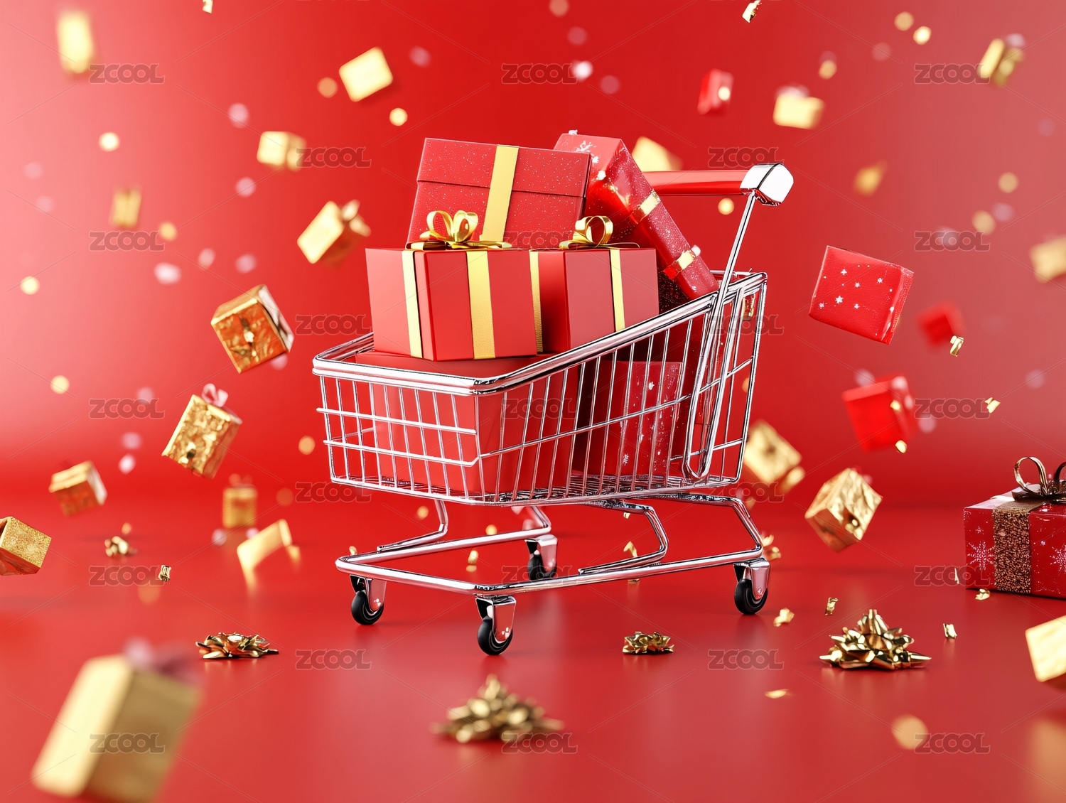购物车,礼物,金币,红色,背景,喜庆,促销,节日,购物,消费
