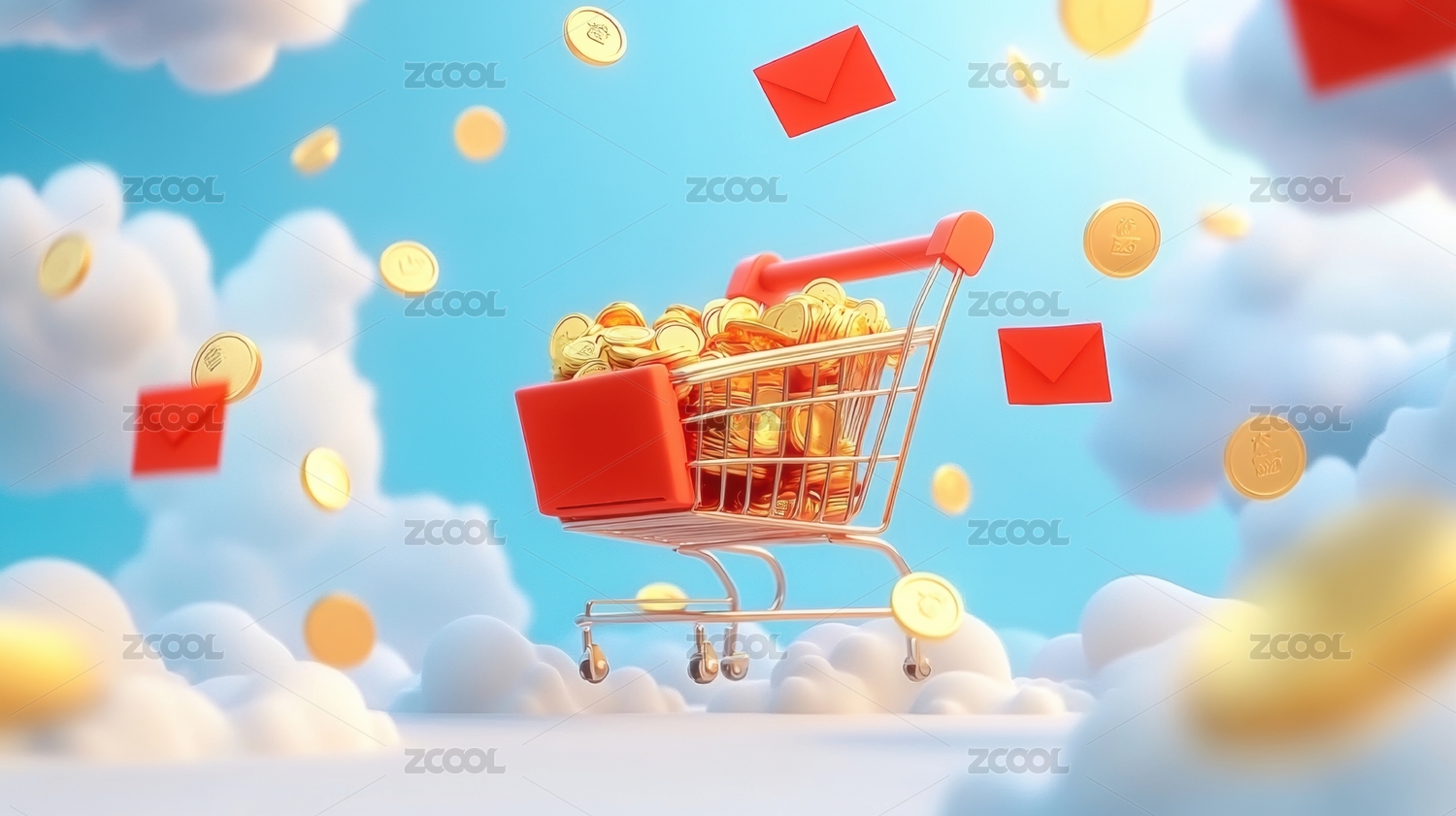 购物车,礼物,金币,红色,背景,喜庆,促销,节日,购物,消费
