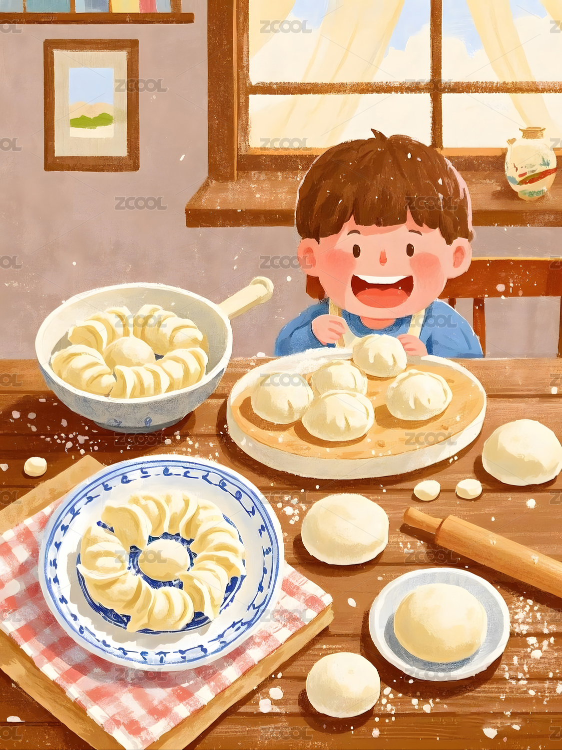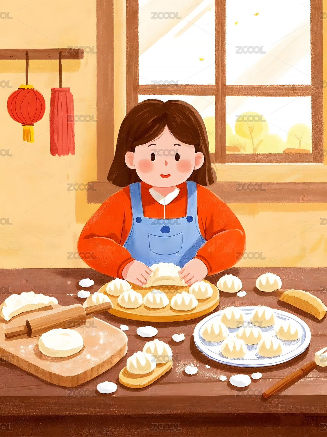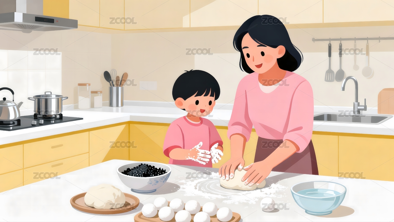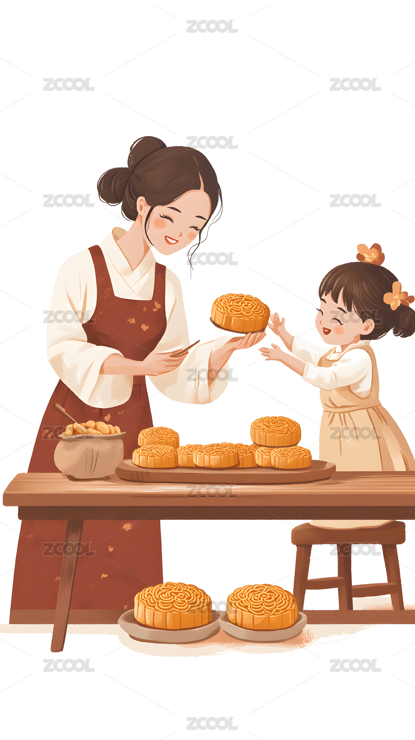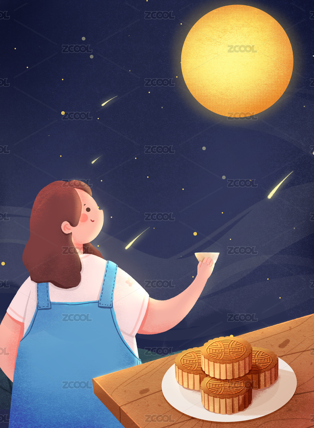 插画,中秋,佳节,卡通风格,中国风,月饼,满月,圆月,传统,节日