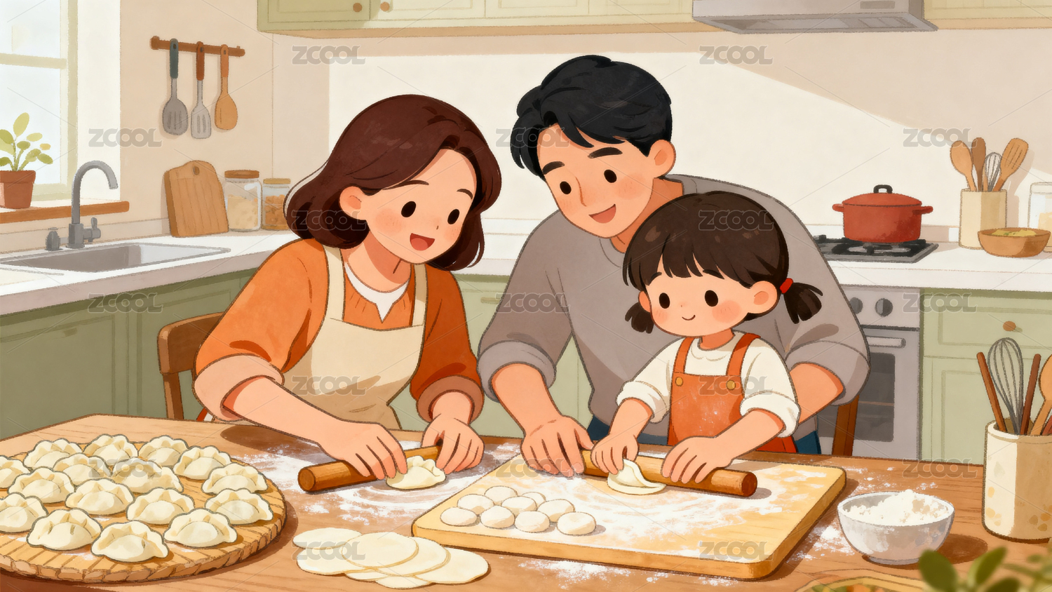 卡通元宵节庆祝家人团圆中国风背景矢量插画