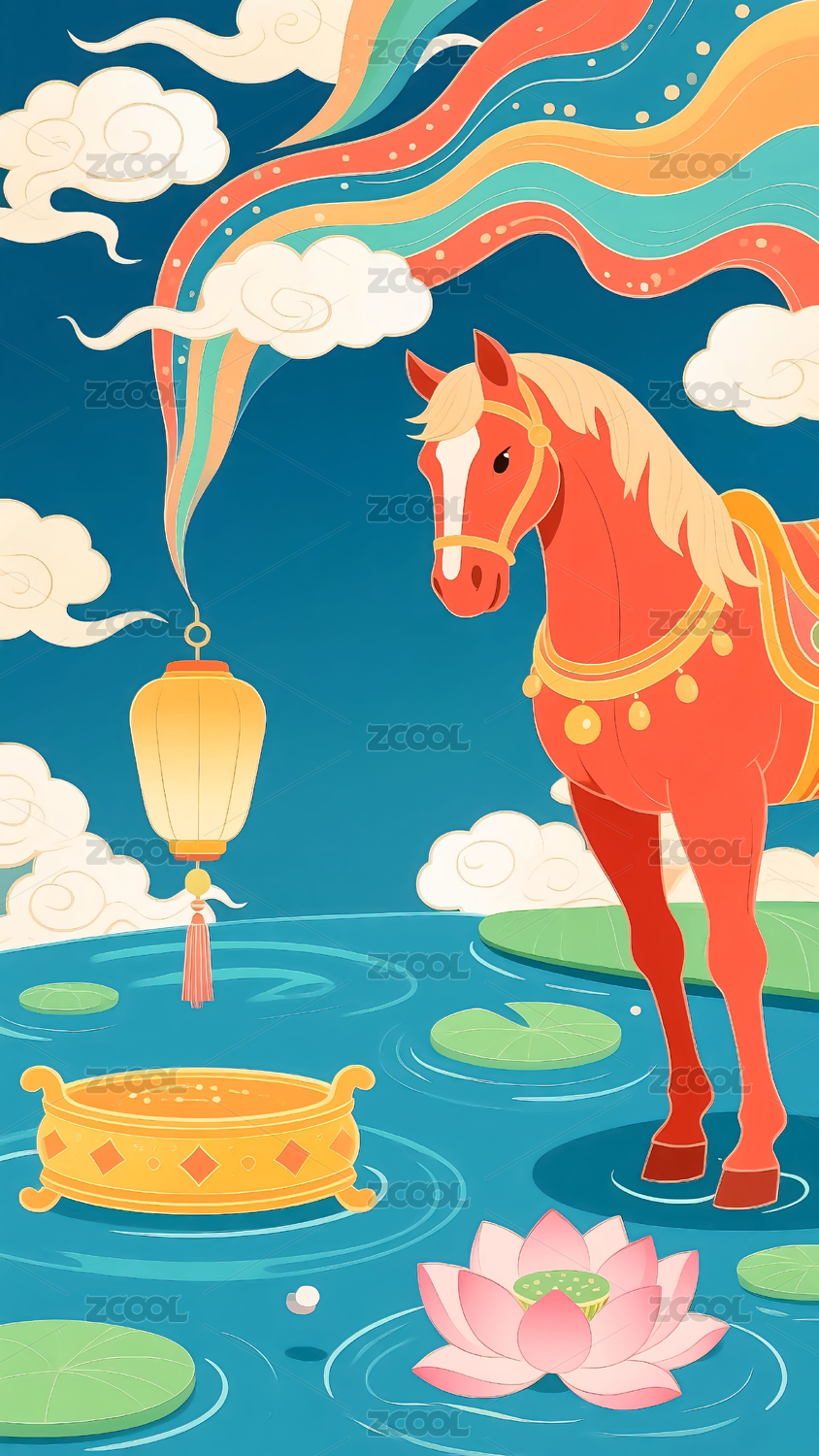 马年,马,新年,十二生肖,生肖马,过年,插画,海报,年历,年画