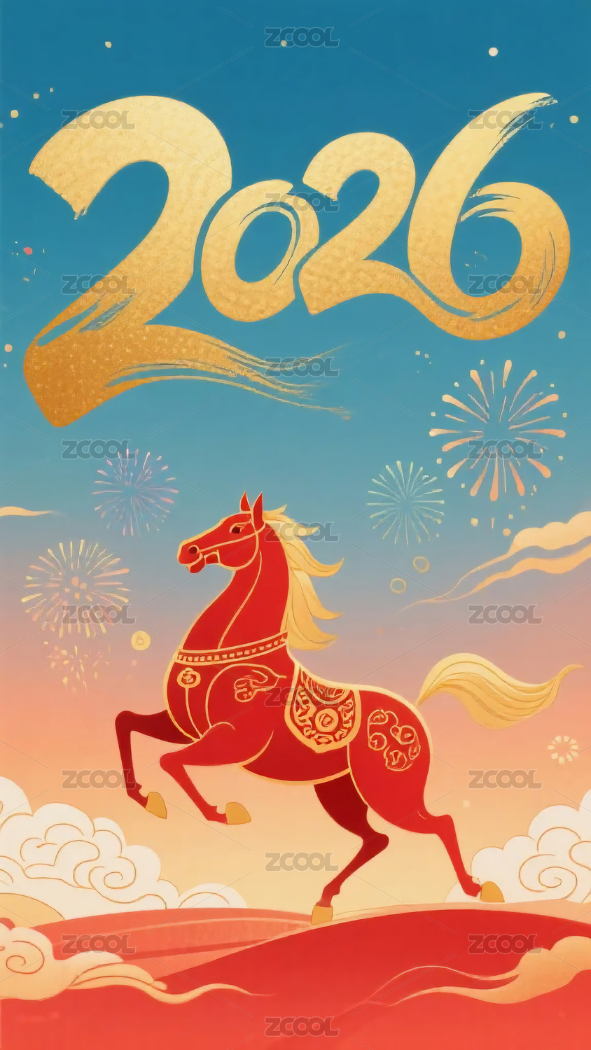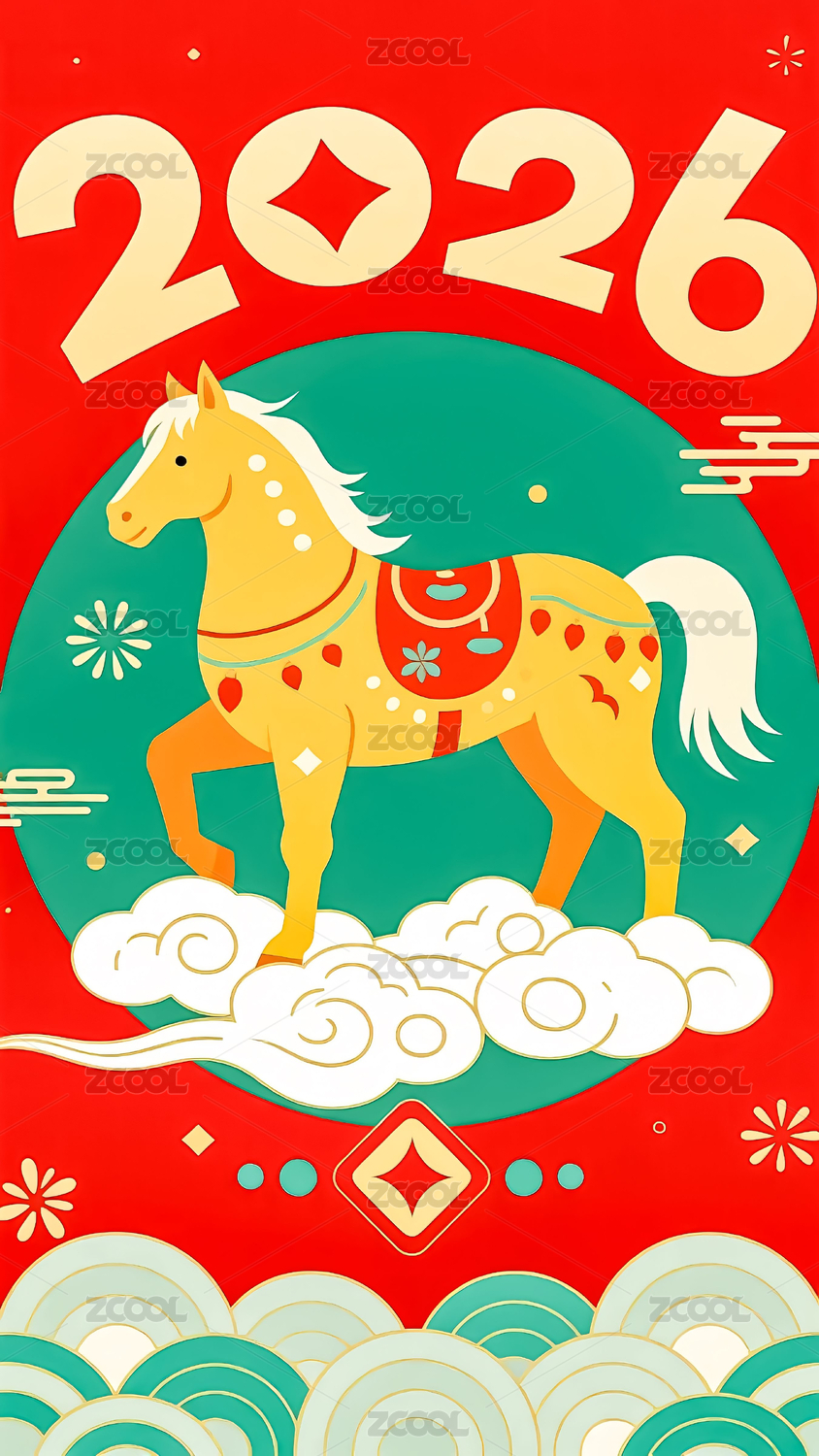 马年,马,新年,十二生肖,生肖马,过年,插画,海报,年历,年画
