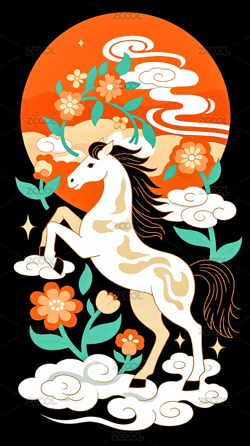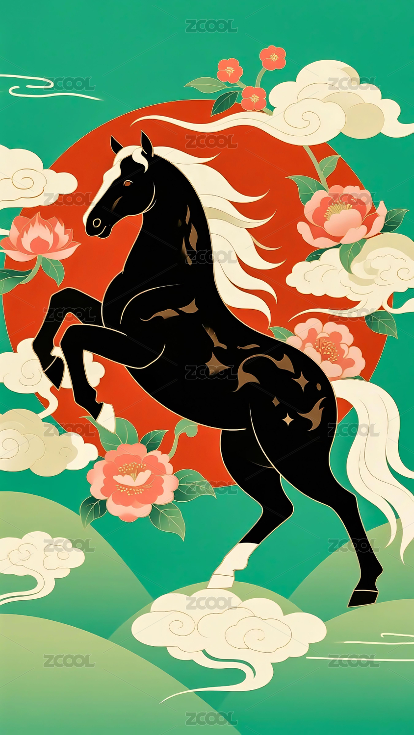 马年,马,新年,十二生肖,生肖马,过年,插画,海报,年历,国画