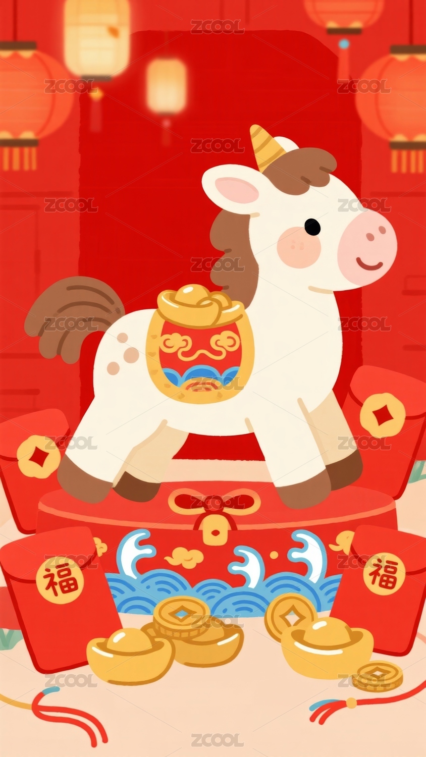 马年,马,新年,十二生肖,生肖马,过年,插画,海报,年历,国画