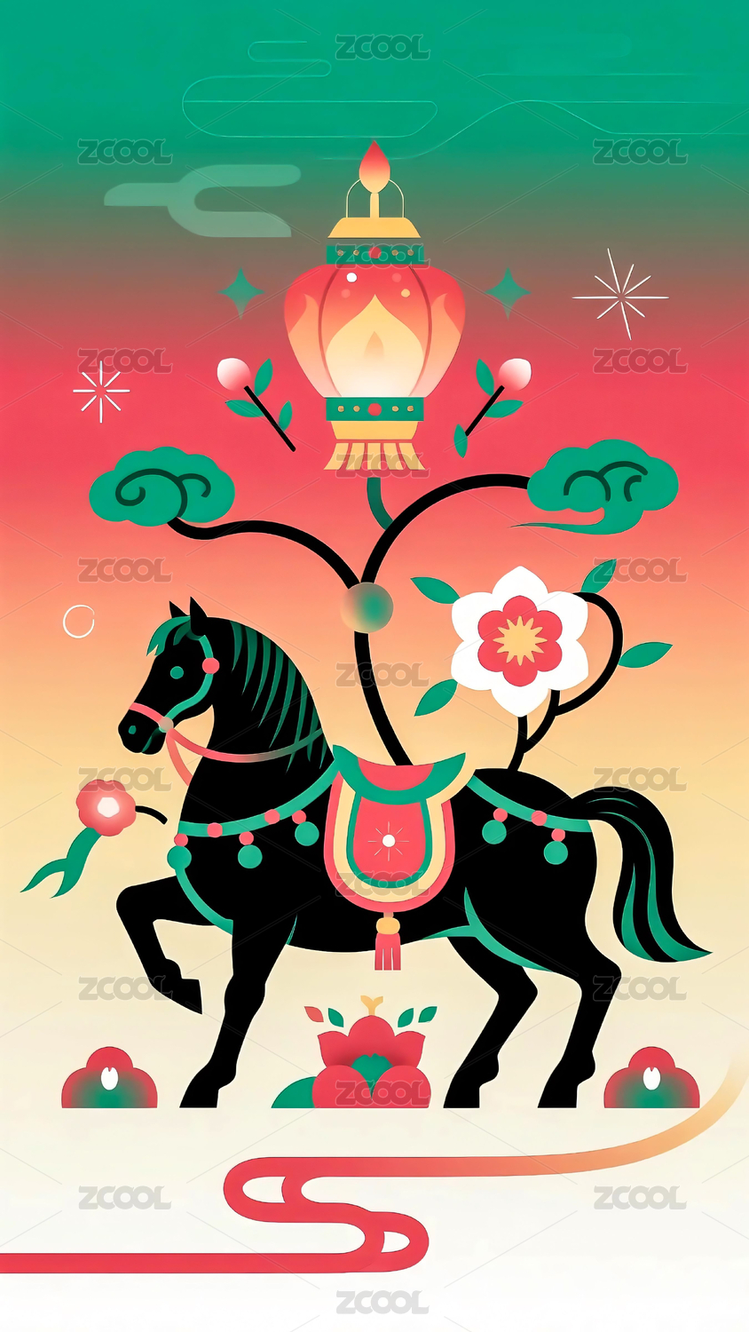 马年,马,新年,十二生肖,生肖马,过年,插画,海报,年历,国画