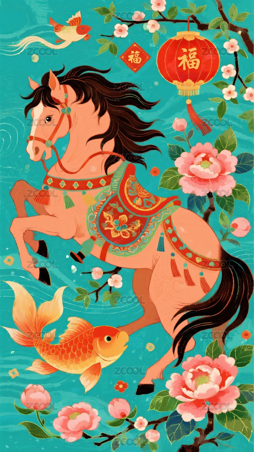 马年,马,新年,十二生肖,生肖马,过年,插画,海报,年历,国画
