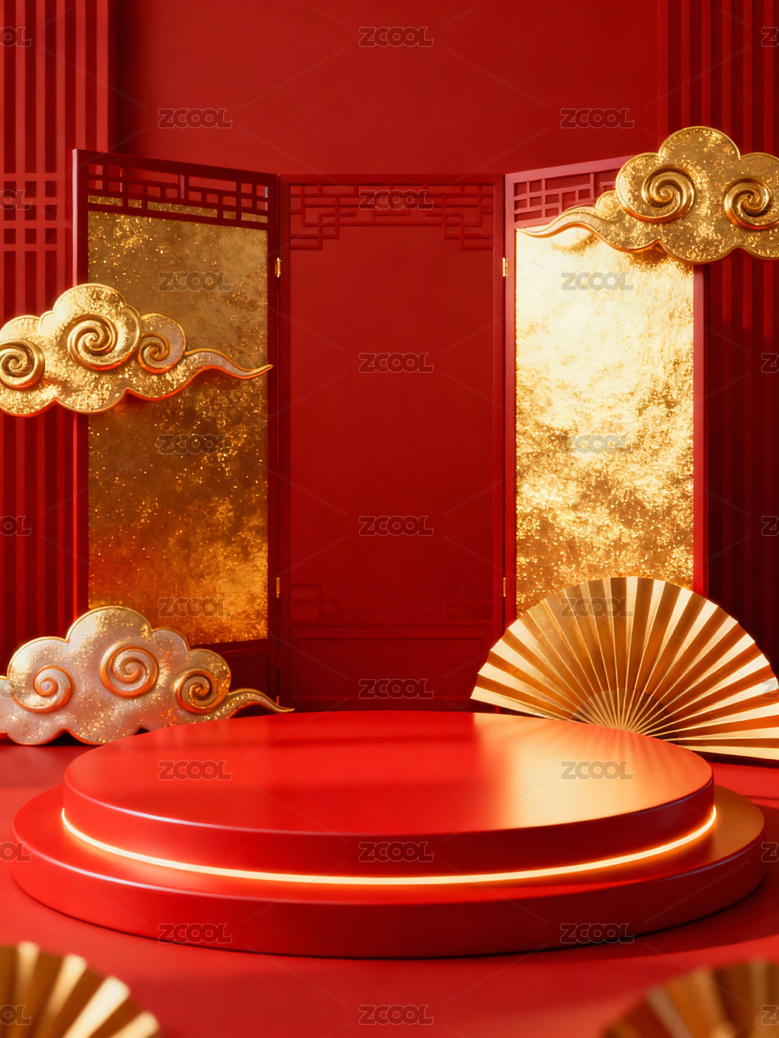 中国风,红色,展示台,拱门,祥云,窗棂,喜庆,传统,春节,新年