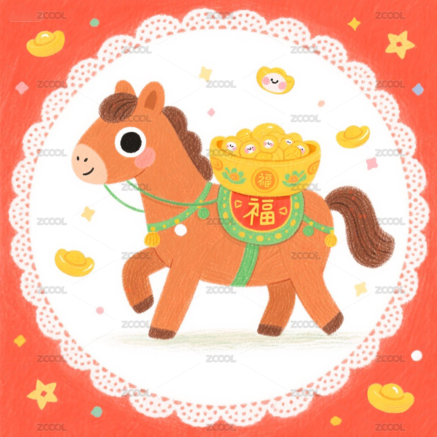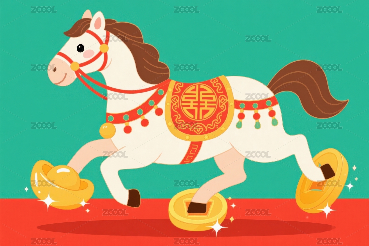 马年,马,新年,十二生肖,生肖马,过年,插画,海报,年历,国画