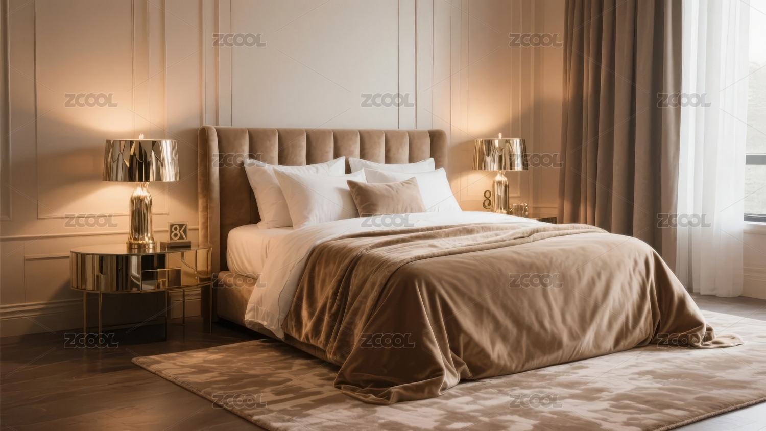 :卧室 豪华 装饰 床 床头柜 台灯 镜