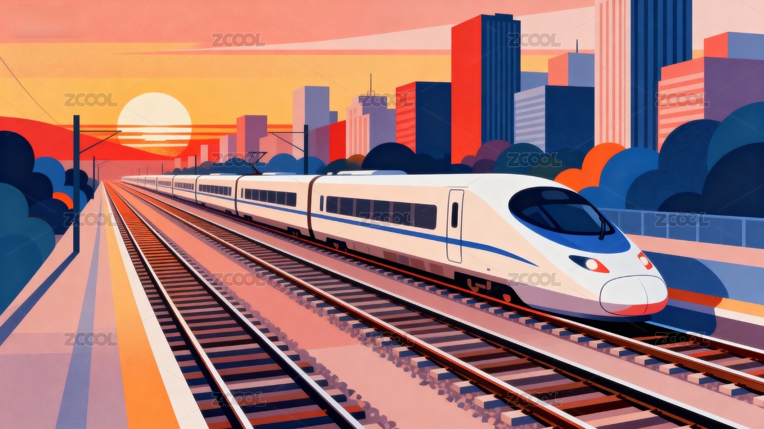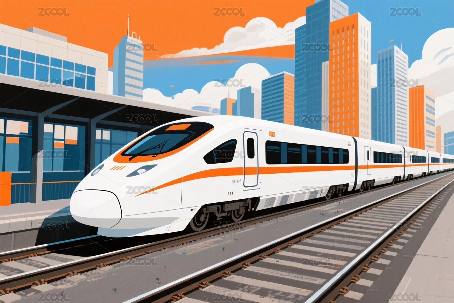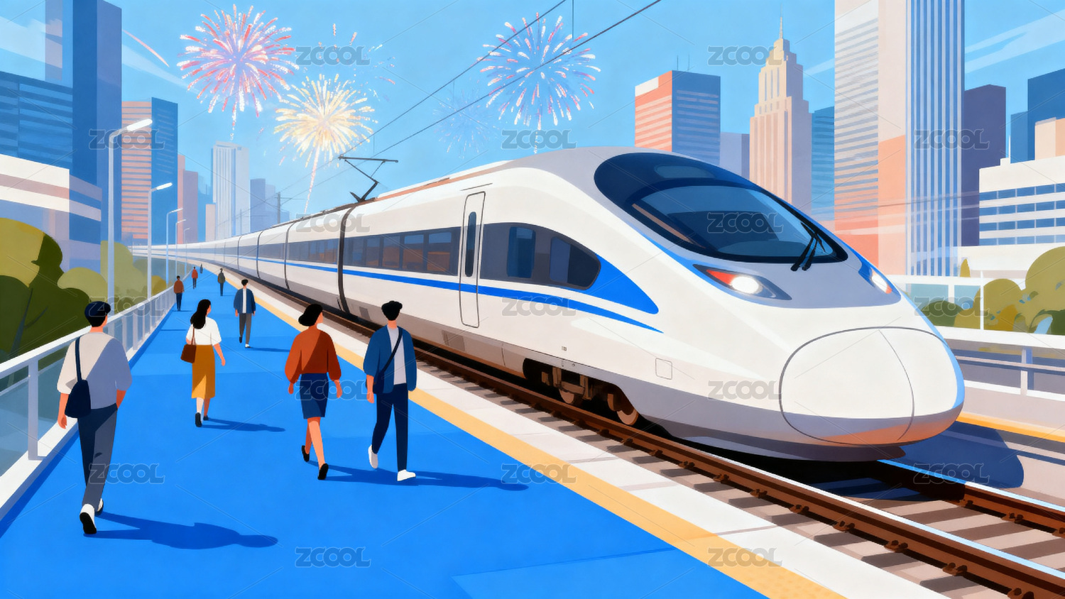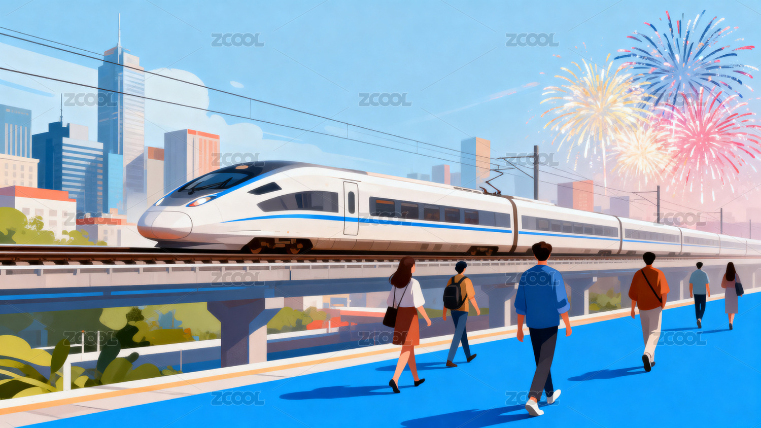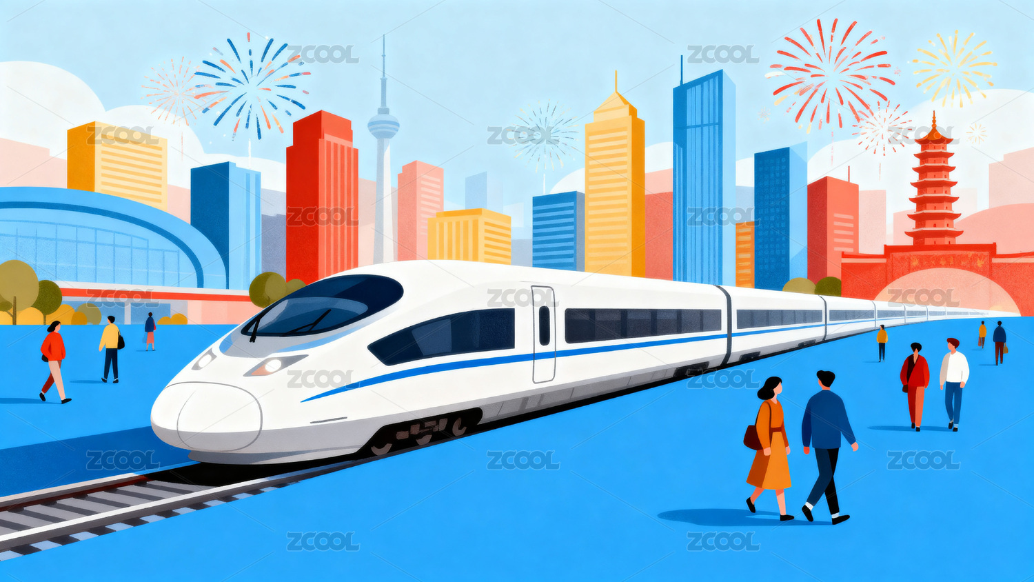 卡通手绘春运火车高铁动车春节返乡回家插画