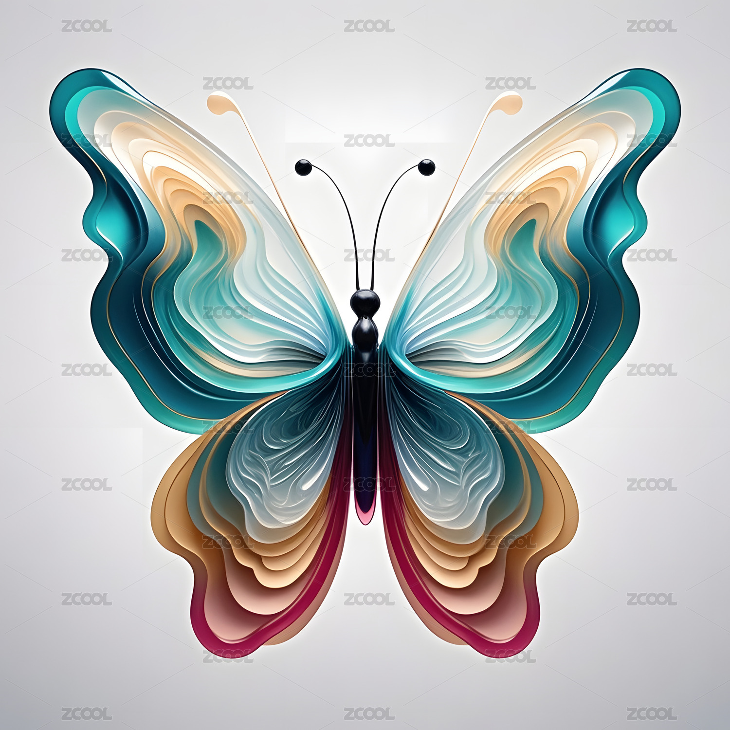 梦幻炫彩的金属质感蝴蝶