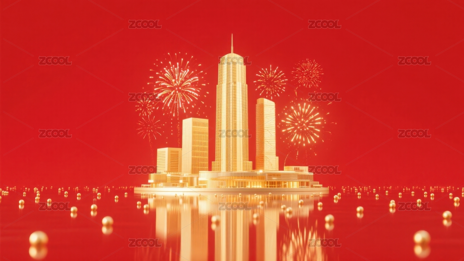 金色建筑烟花庆祝