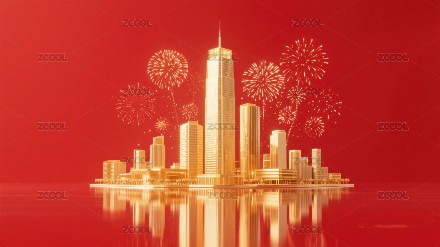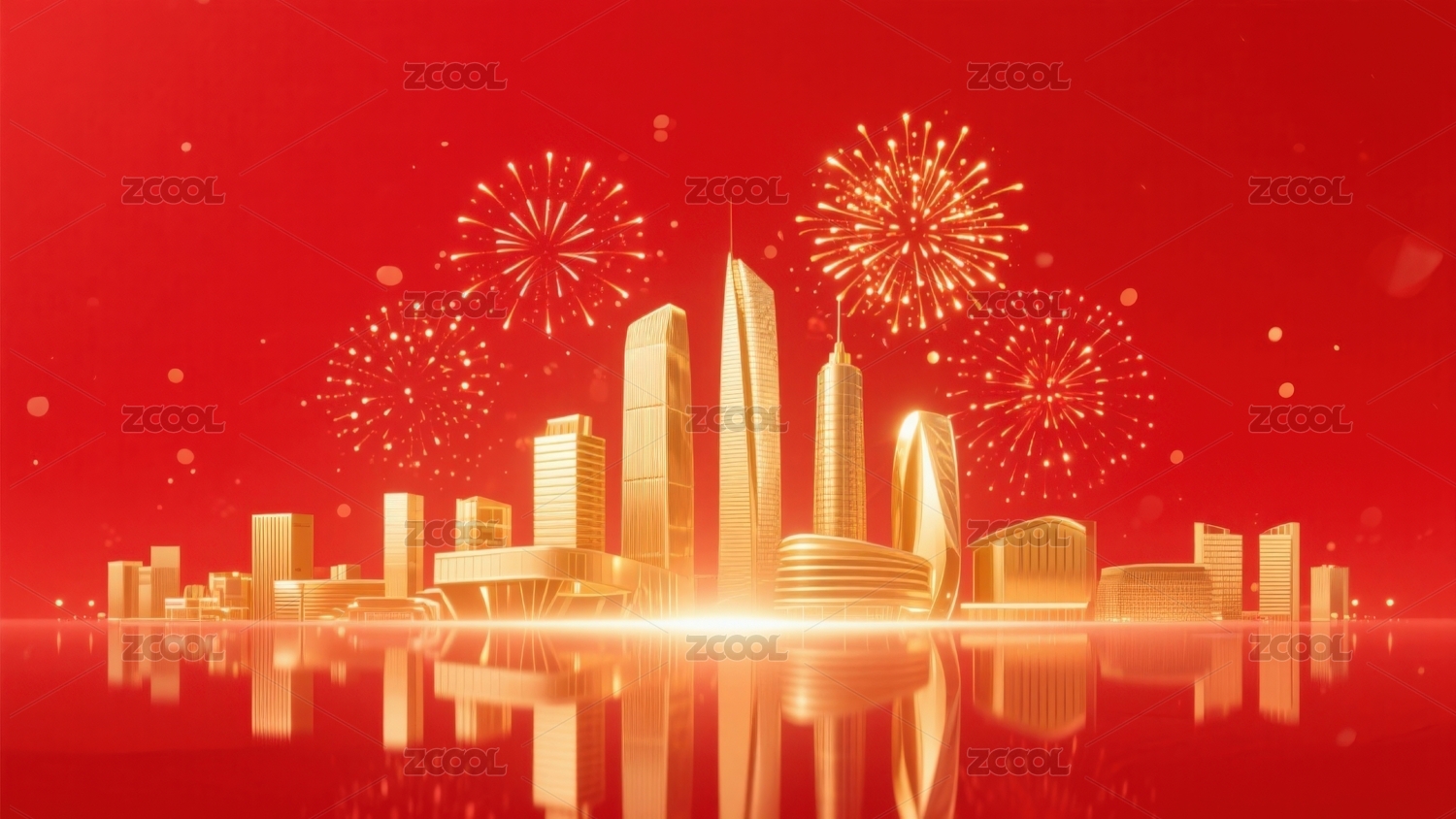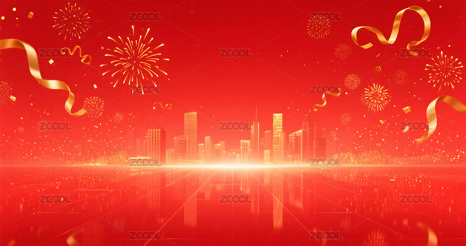 城市烟花庆祝红色背景