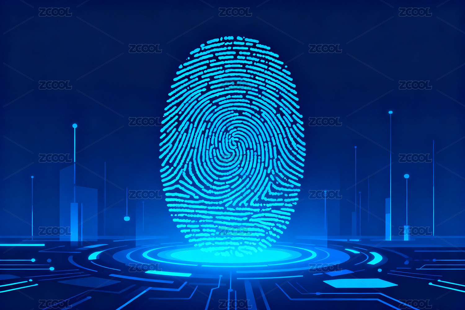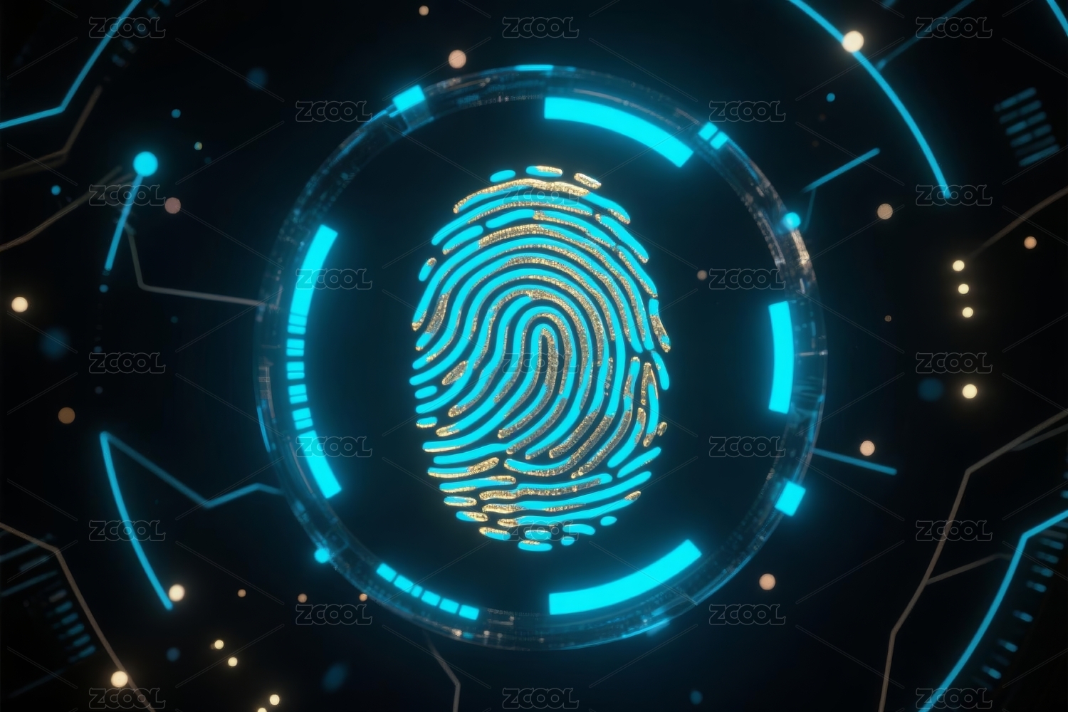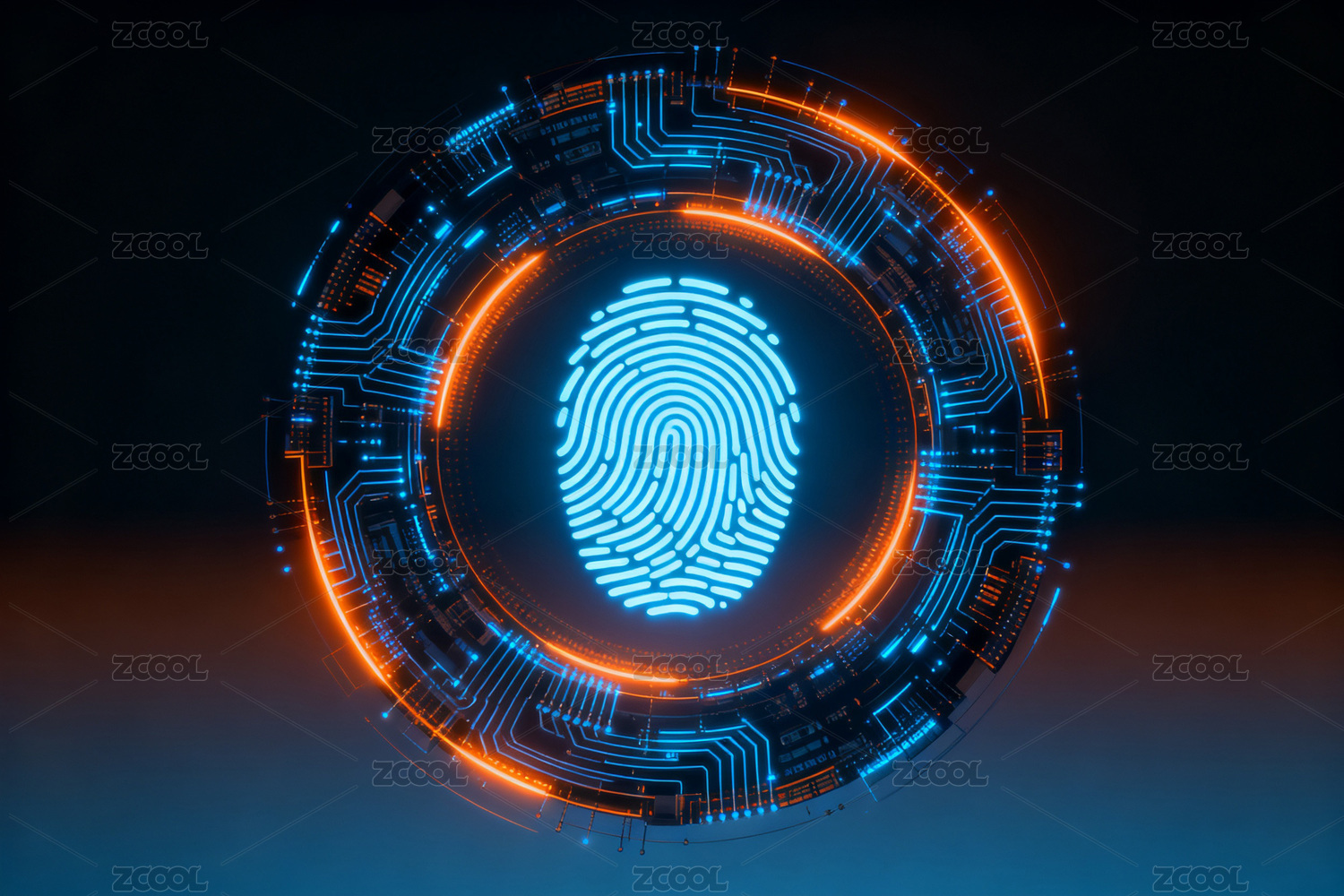 fingerprint指纹,安全、机密、科学技术抽象矢量背景图