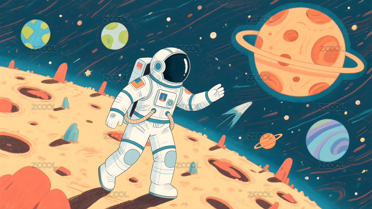 人类月球日宇航员外太空宇宙飞船火箭插画