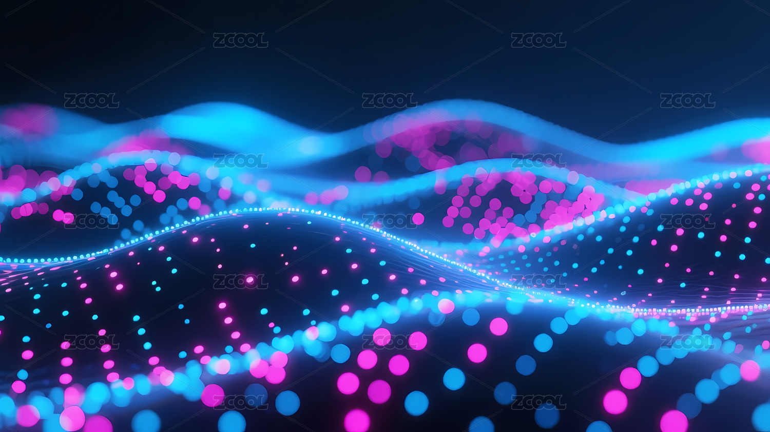 科技粒子蓝紫色渐变半色调几何波线光效图片