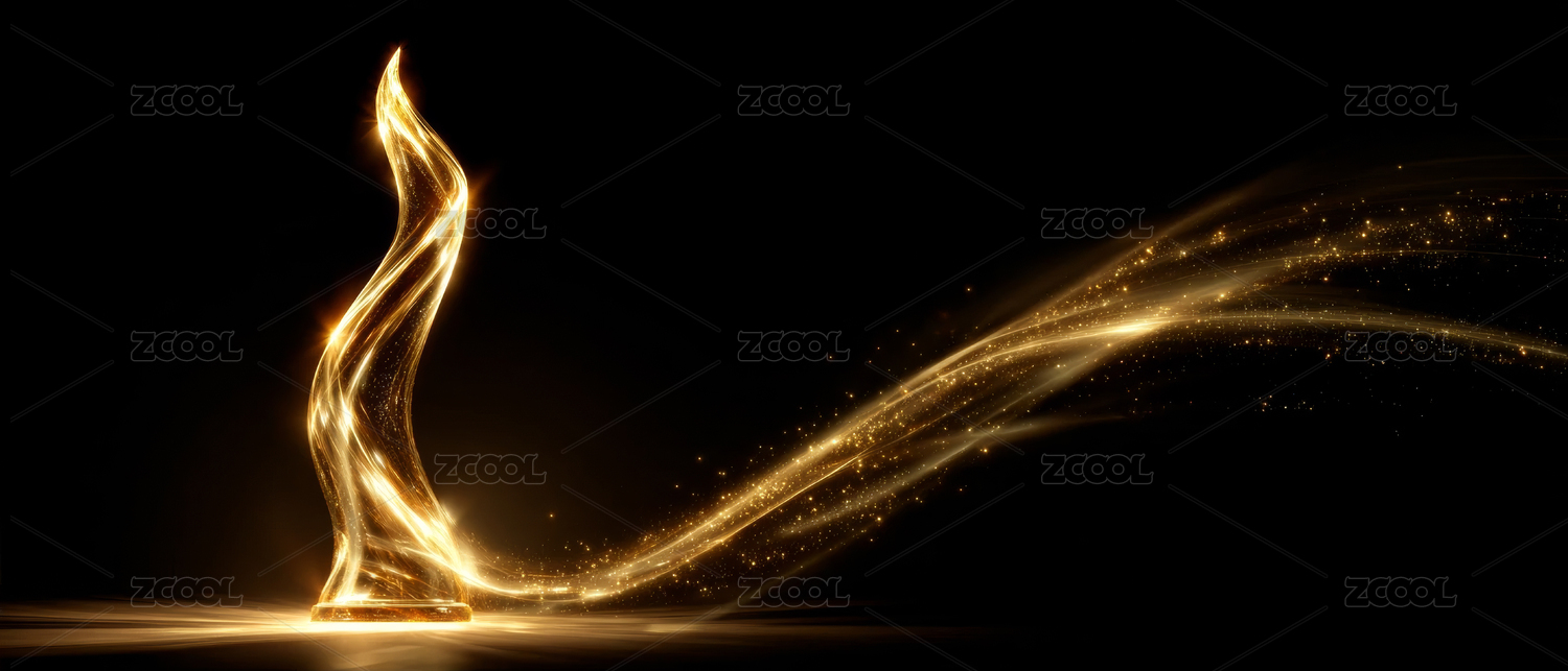 带有金色光轨的抽象火焰奖杯